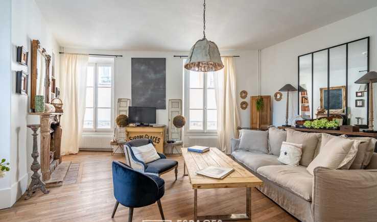 The second level, dedicated to the sleeping area, offers on one side: a pretty 15 sqm bedroom which benefits from a dressing room (formerly a 9.5 sqm bedroom), on the other: a beautiful 11 sqm bedroom, then a bathroom with quality decoration.