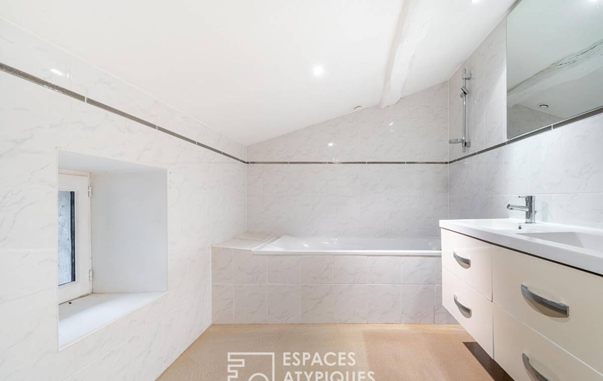 Comprising five bedrooms, it captivates with its generous proportions and welcoming atmosphere. It benefits from a private 700 sq m garden, an efficient heat pump heating system, a superb vaulted cellar, and ample parking.