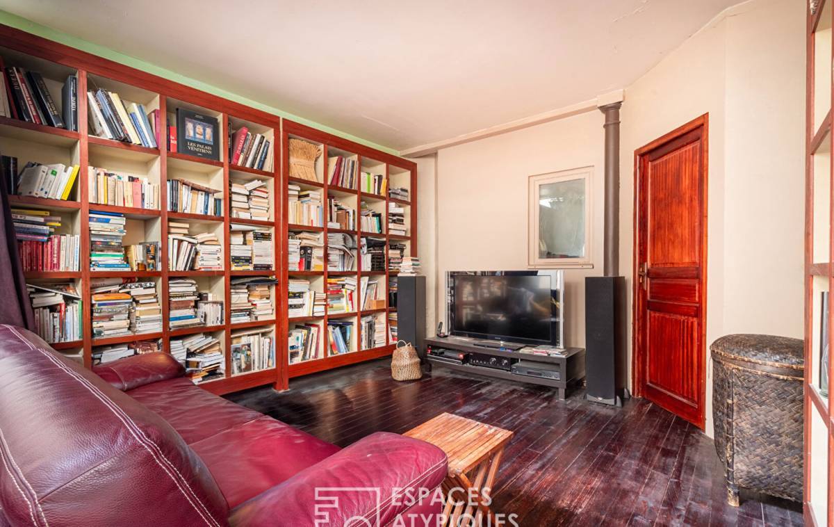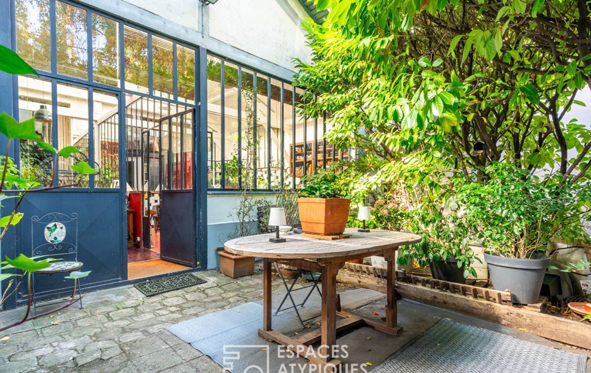 Outside, below, a semi-underground 50 sq.m. workshop, lit by an English courtyard (light well) and benefiting from 3 meters of ceiling height, offers an independent volume ideal for a creative space, an office, or a studio.