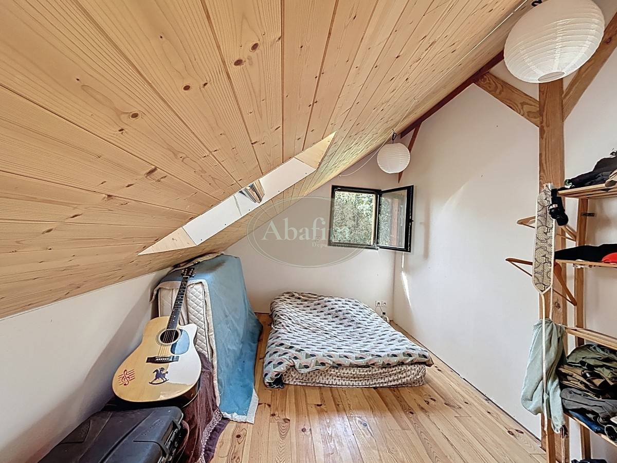 To the west of the house, a path leads to the adorable chalet which could be rented out all year long. A spacious living space has natural light and a corner kitchen. The corner sitting area/office leads to the functional and equipped bathroom equipped with a dry toilet. Stairs lead to a mezzanine with lovely wooden balustrade made from birch and which comfortably houses a large double bed. The living space opens to a pretty and peaceful terrace with view: it’s not unusual to share your morning coffee with the local squirrels!