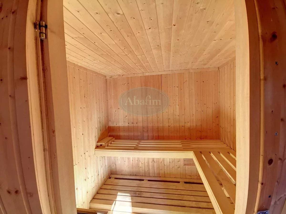 Upstairs are four bedrooms (one of which has a private bathroom), a bathroom and a sauna.