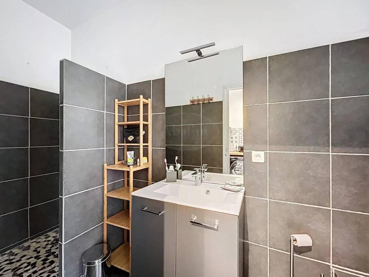 The ground floor is a studio apartment (26.7 m²) with a main room, a kitchen that is fully equipped and perfectly functional and a bathroom with a walk-in shower and toilet. This studio gives directly onto the courtyard outside.