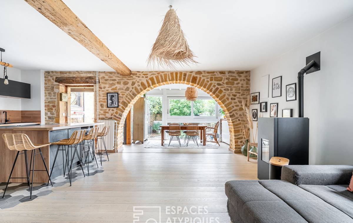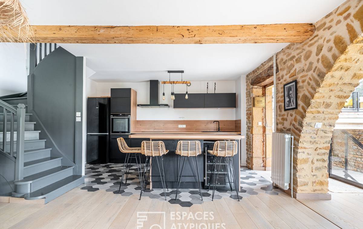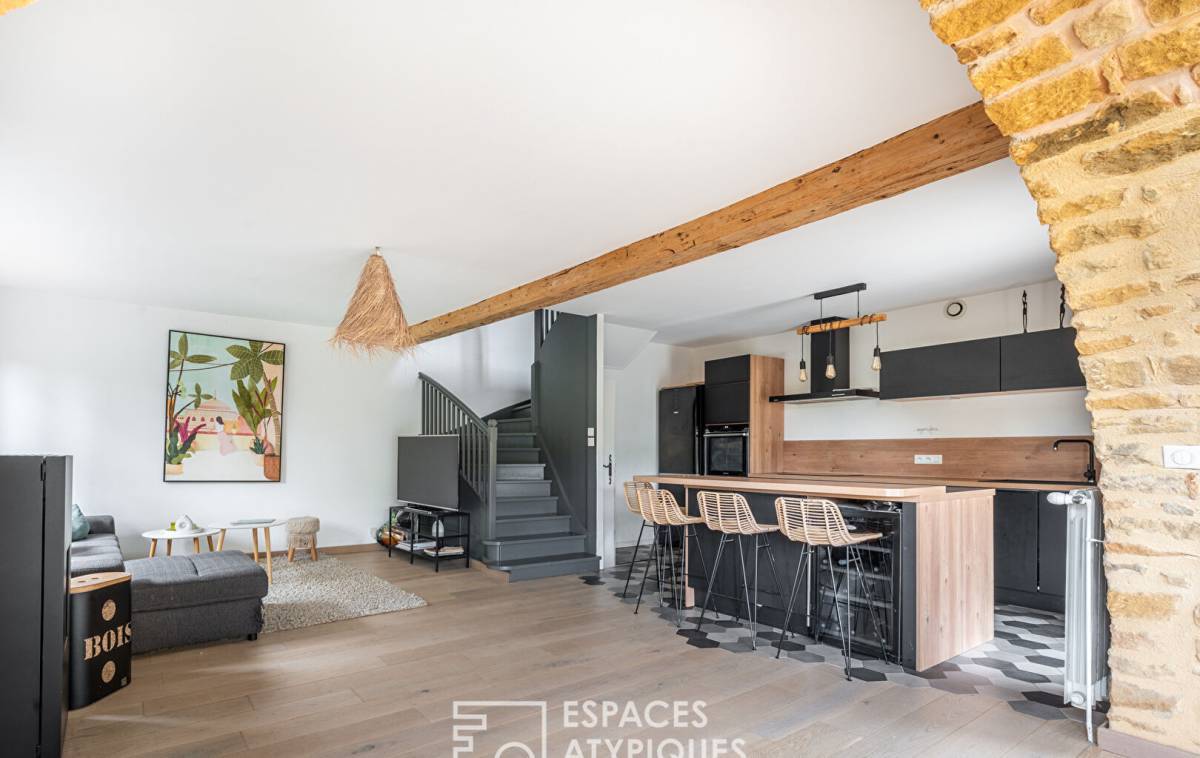 Nestled in the heart of the Beaujolais region of Pierres Dorées, this characterful residence combines the charm of the old with the finesse of contemporary design.