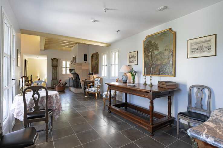 The heart of the property is an authentic stone country house dating back to 1827, extended in 1980 and fully renovated between 2012 and 2016. The home is in perfect condition, thoughtfully updated with floor heating powered by a heat pump, and air-conditioning in the master bedroom and in the wine cellar. A generous living room opens onto a large terrace, ideal for outdoor dining and enjoying tranquil views. Warmth and atmosphere flow throughout the interior, featuring a large ancient stone fireplace in the living room, a cozy library with fireplace, and a kitchen with fireplace and all modern appliances.