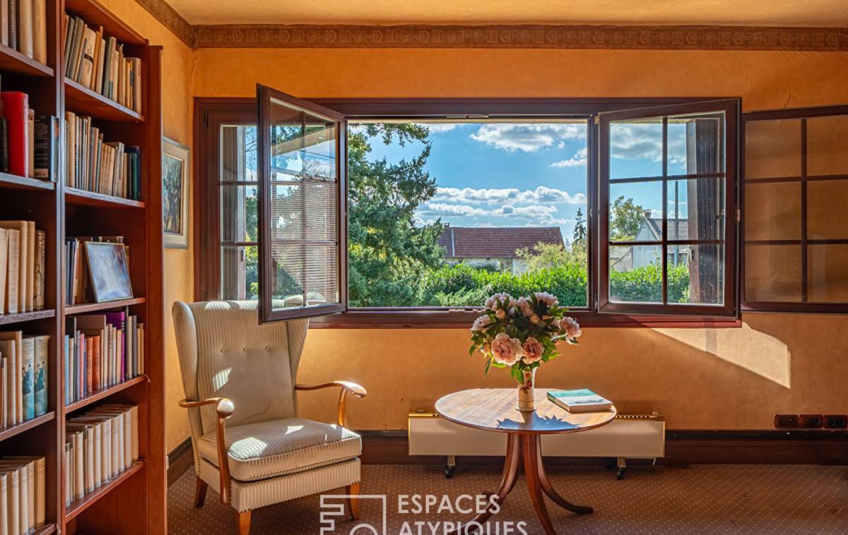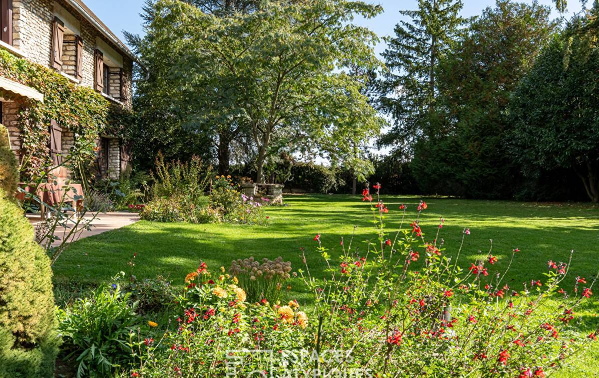 In the village of Beynes, 35 km from Paris, this charming property offers 400 m² of living space set within a beautifully landscaped 2600 m² garden, creating a unique living environment, designed to generously accommodate family, friends, and a potential business with independent access.
