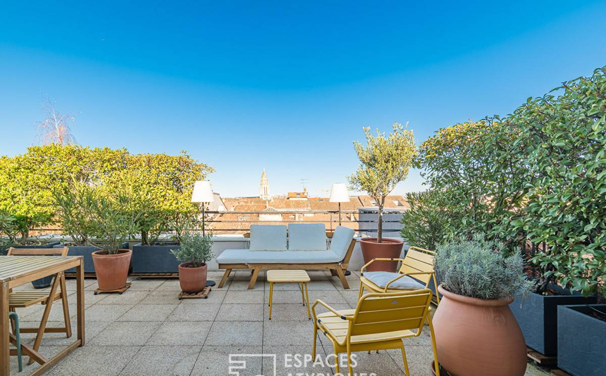 Located on the 3rd and top floor of a charming building constructed in 2008, with an elevator, this renovated 110 sq m apartment boasts two terraces of 10 sq m and 42 sq m. Ideally situated near Place Stalingrad, it offers a privileged living environment, peaceful and close to all amenities.