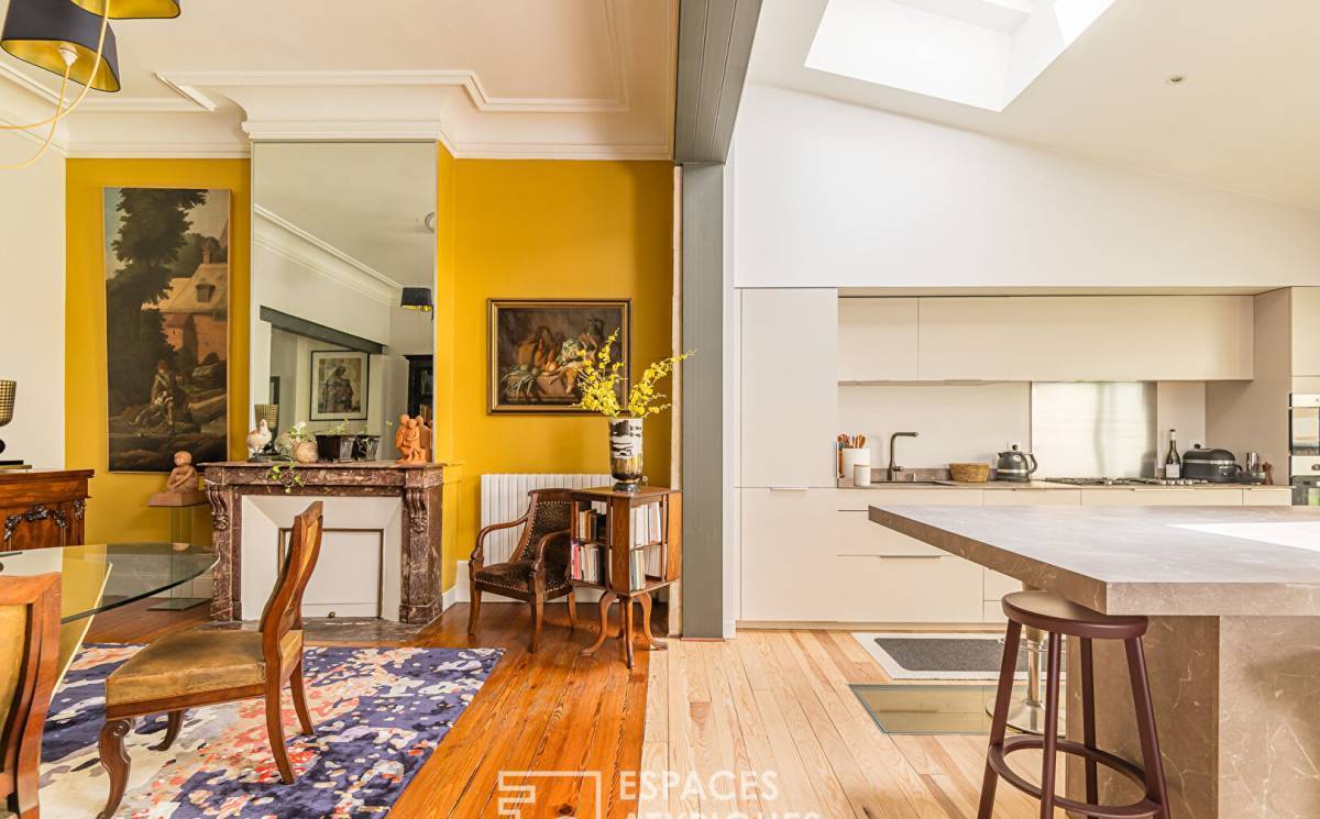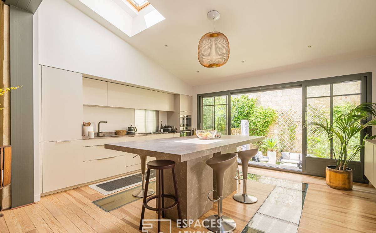 With a rare and singular character, this house perfectly embodies the DNA of Espaces Atypiques: a living space that is both inspiring and functional, combining heritage character and modernity.