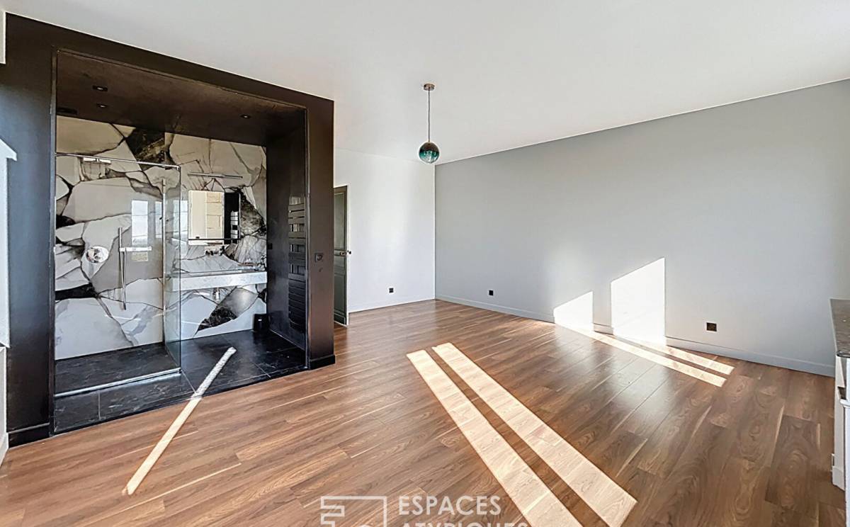 The upper floor accommodates three spacious bedrooms, one with an integrated shower room and a master suite, offering an intimate and soothing atmosphere.