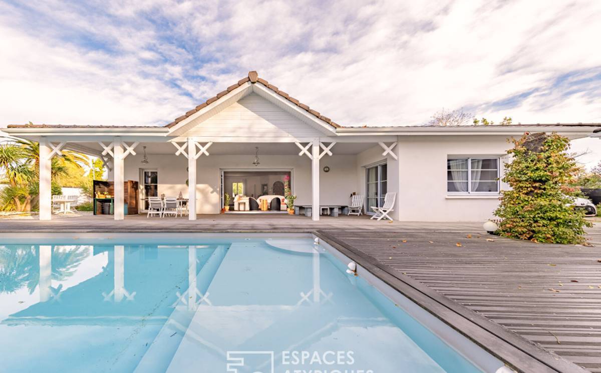Located in the most sought-after and private neighborhood of Gujan-Mestras, just steps from the coastal path, this single-story villa offers a rare living environment, combining elegance, comfort, and serenity.