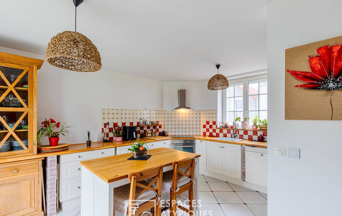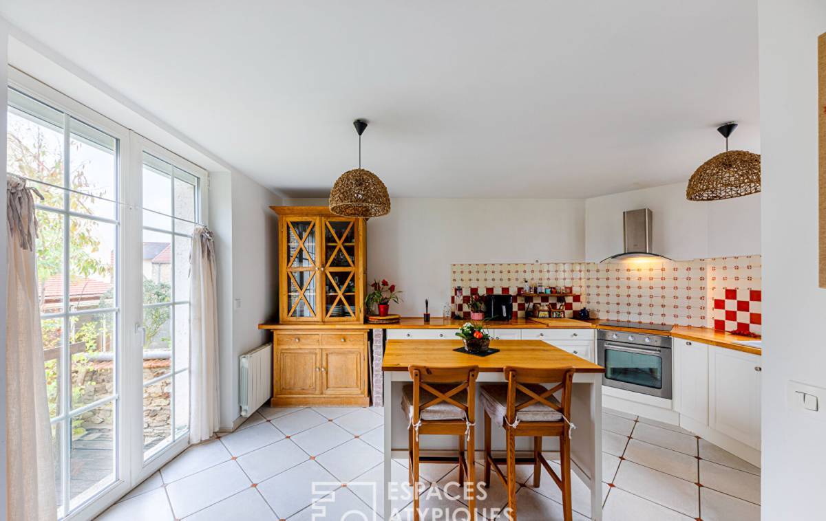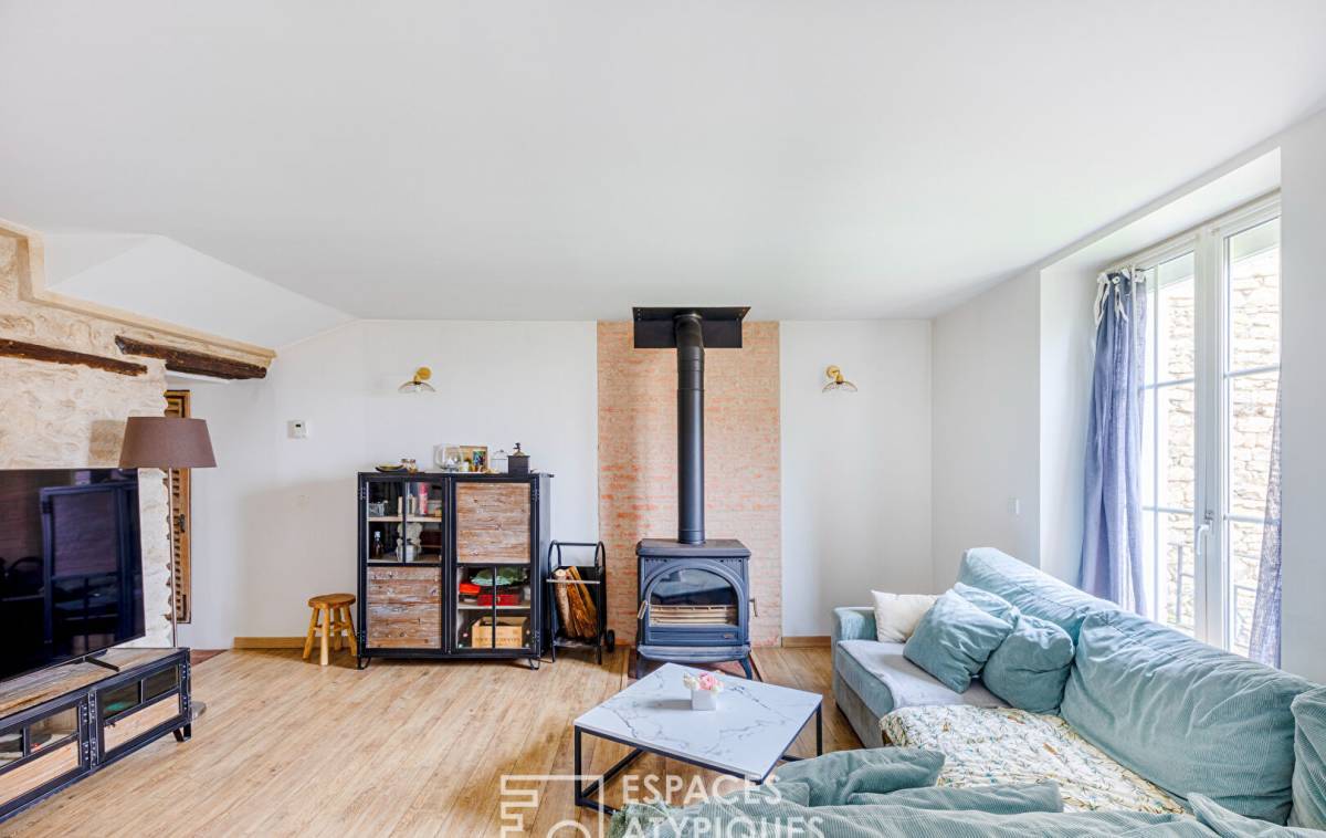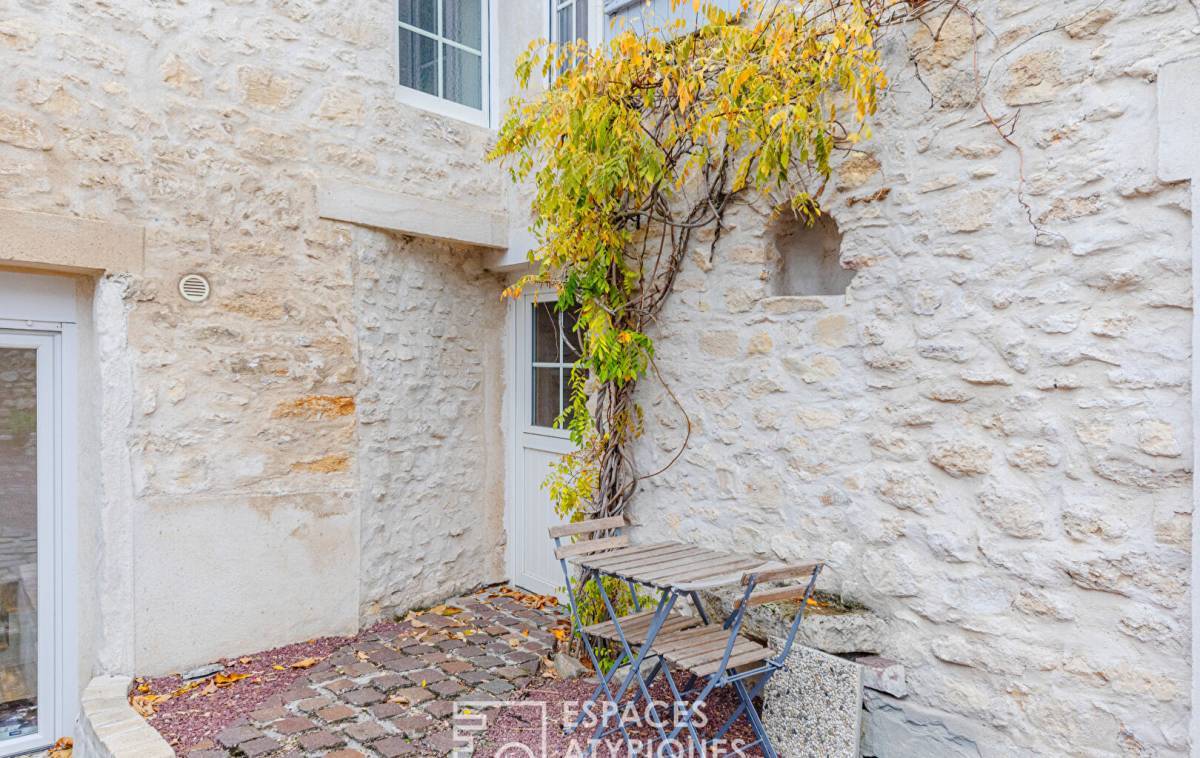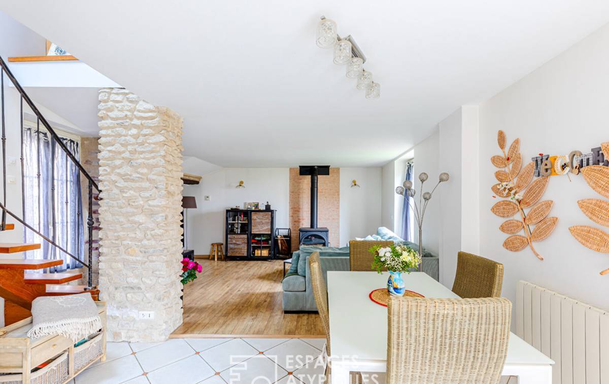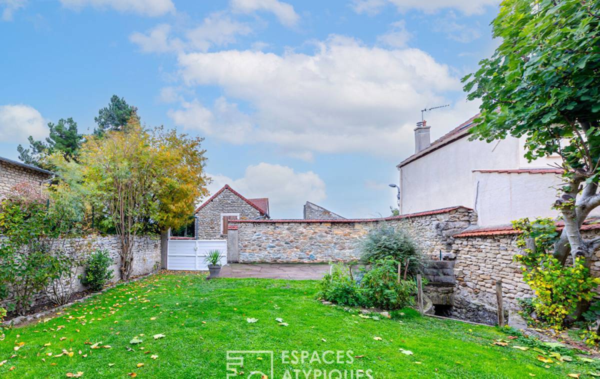 Located in a private cul-de-sac in the charming village of Bouafle, this characterful house of nearly 150 sqm is a real favorite. Hidden from view, it has benefited from a careful renovation that preserves its soul while offering resolutely modern living comfort. The combination of wood, exposed stone, and generous volumes creates a unique and warm atmosphere. The house offers two distinct exteriors: a first, paved and intimate courtyard, perfect for a coffee in the sun, and a superb main garden, enclosed by stone walls and not overlooked, which invites relaxation and hides a very large vaulted cellar. A garage completes this ensemble. The house is structured around several living and outdoor spaces. The ground floor, with a very large entrance, provides access to the cellar and garage, to the garden, or to a separate room and its private bathroom. Also accessible separately, this fully renovated, bright room, complete with its own water point and toilet, offers exceptional modularity. This space is perfect for practicing a liberal profession, creating an artist's studio, a teleworking office, or a studio for a teenager. A staircase leads to the upper floor, which houses a magnificent living room bathed in light, where the light parquet flooring complements the stone and beams. A wood-burning stove centralizes the living area, promising mild winter evenings. The open and functional kitchen has a central dining island, ideal for moments of sharing. A bedroom with its bathroom on the same floor greatly facilitates daily life. The second floor is dedicated to relaxation. A beautiful landing room with its exposed framework and wooden walls leads to two sleeping areas. There is a first large, cozy and bright bedroom, including superb attic spaces under the roof, punctuated by dark beams and skylights. The second bedroom is a very large master suite with a dressing room, large bathroom, and office area: a very generous space for privacy! The general condition is impeccable, requiring no work. Bouafle offers a privileged, green, and peaceful living environment, while remaining connected. You will find schools and local shops on site. The location is strategic, with quick access to the A13 and A14 motorways, and the proximity of the Aubergenville or Les Mureaux stations (Line J) connecting Paris Saint-Lazare in less than 40 minutes and future Eole RER stations. A rare property that combines authentic charm, a quality renovation, and sought-after development potential. The Pluses: The charm of the old (beams, stone, parquet flooring) The impeccable condition and careful renovation The independent space for liberal profession or other The walled garden, not overlooked Very large vaulted cellar The quiet location in a sought-after village Garage ENERGY CLASS: D / CLIMATE CLASS: B Estimated average amount of annual energy expenditure for standard use established from 2021/2022/2023 energy prices, subscription included: 2220 euros and 3040 euros. Julie - RSAC Versailles