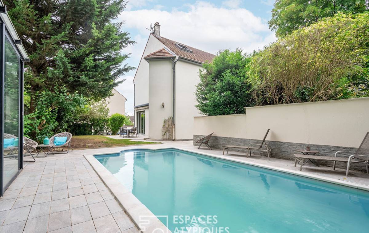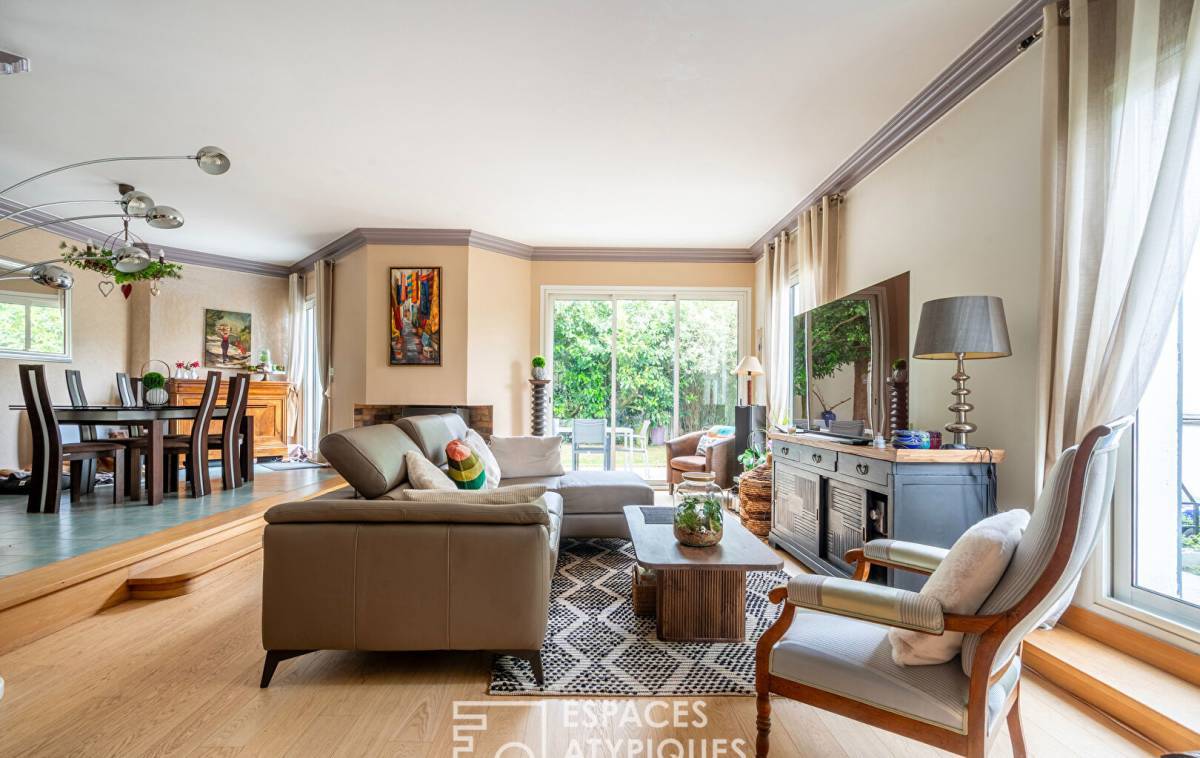 The house, at the end of a cul-de-sac, skillfully combines generous volumes, high-quality features, and a cozy atmosphere.