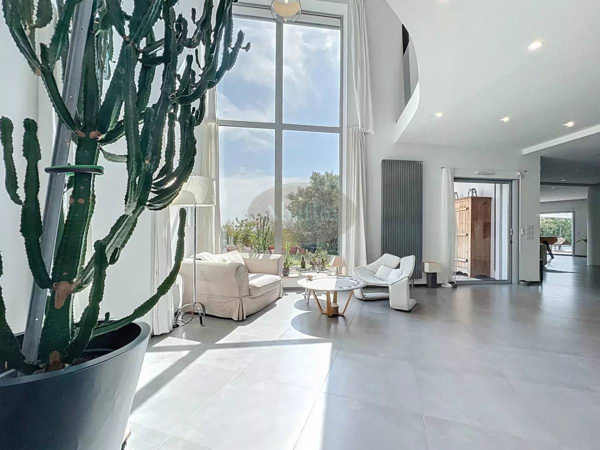 As you enter, you're greeted by a feeling of purity, nature and space. In this superb paved hall (20m²) opening onto the ground floor, where light dominates, you'll face the oversized double-glazed bay window and the Mediterranean landscape.