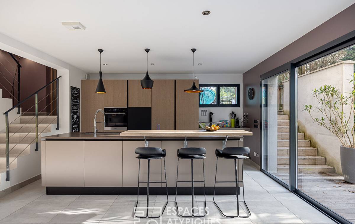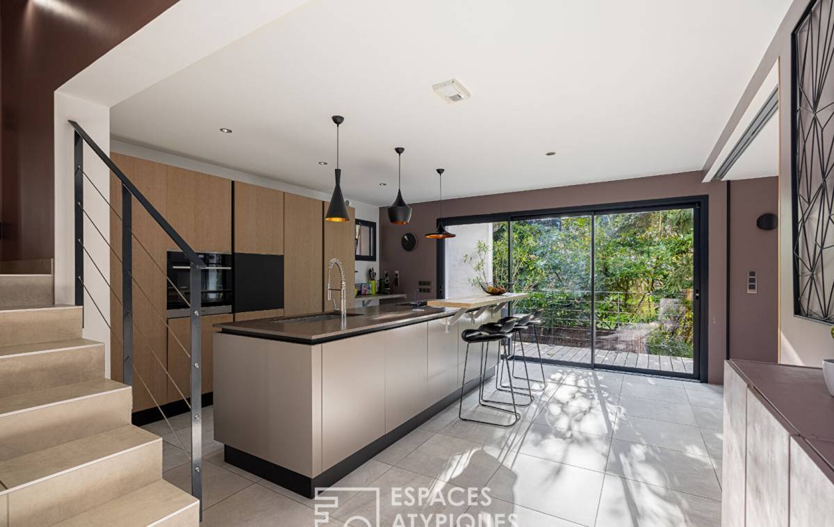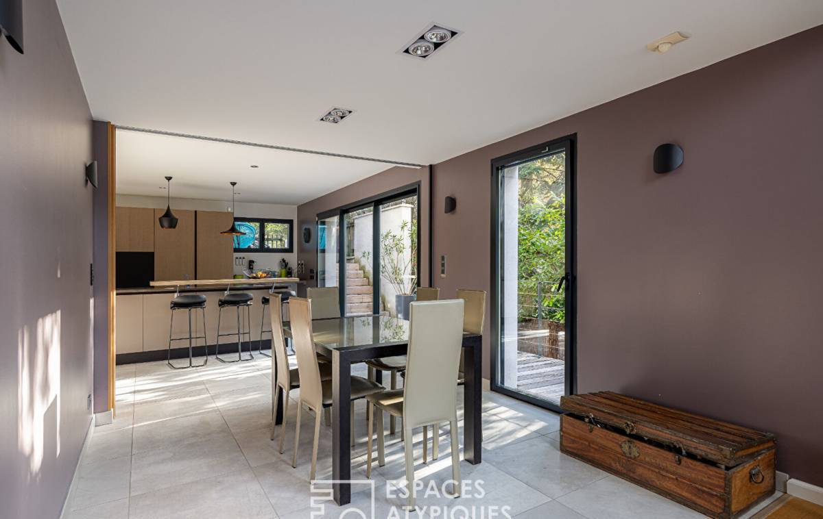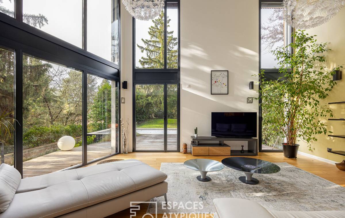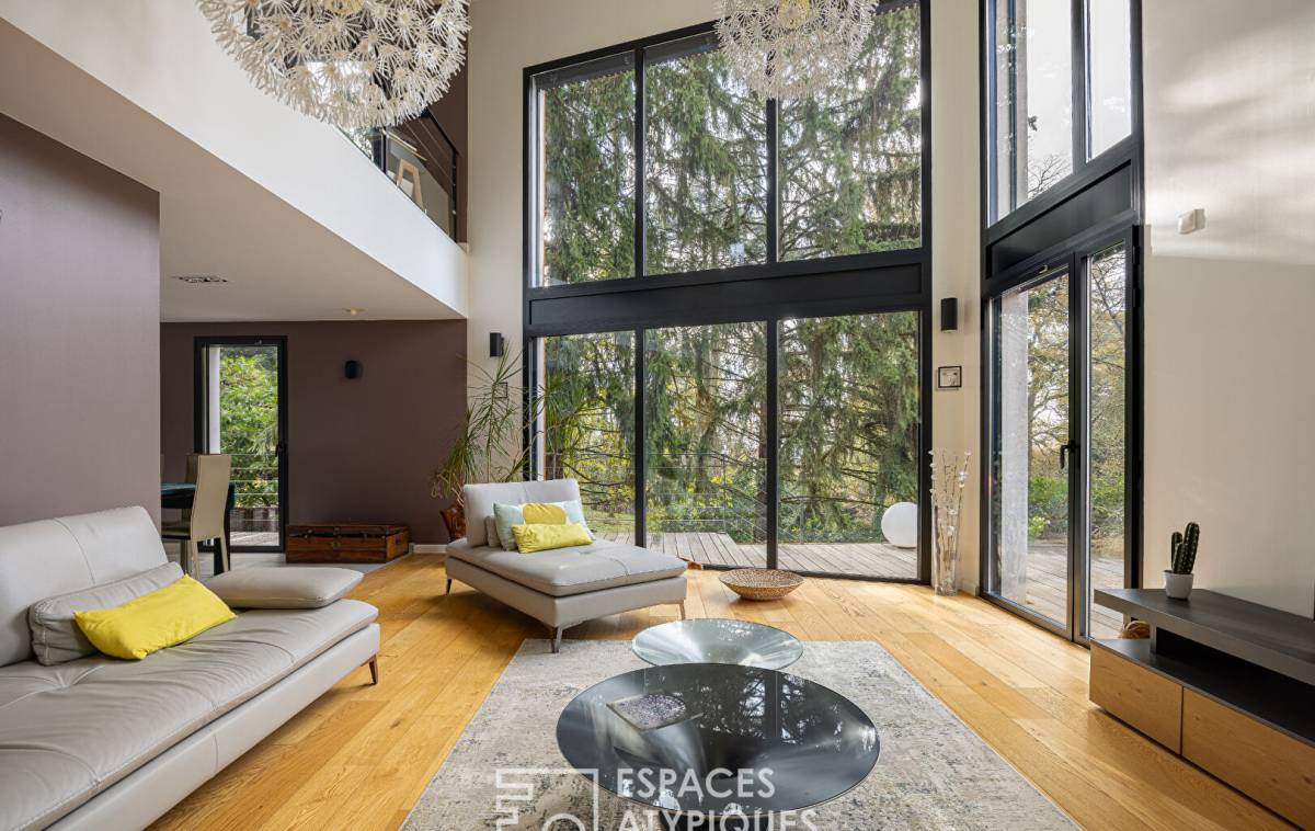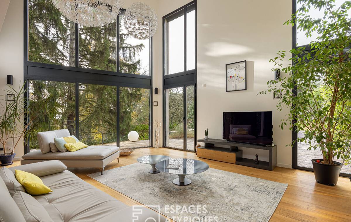 The whole creates a peaceful atmosphere where light, greenery, and contemporary spaces blend harmoniously. With its natural setting, its architecture designed for family life, and its high-quality features, this house offers a unique character and an exceptional quality of life.