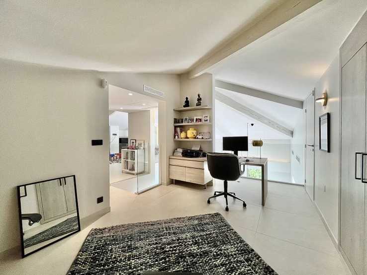 It consists of a large living room with dining area under cathedral ceilings, opening onto a 35 m² south-facing terrace with magnificent sea views.