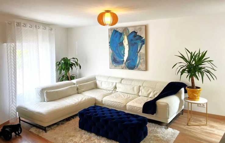 The ground floor offers a large, light-filled living room, a cozy dining room, a modern fully equipped kitchen, and a guest toilet. Upstairs, two beautiful bedrooms are accompanied by a bathroom and a private balcony. The basement has two additional bedrooms and a bathroom, with direct access to a pleasant outdoor patio, ideal for relaxing moments.