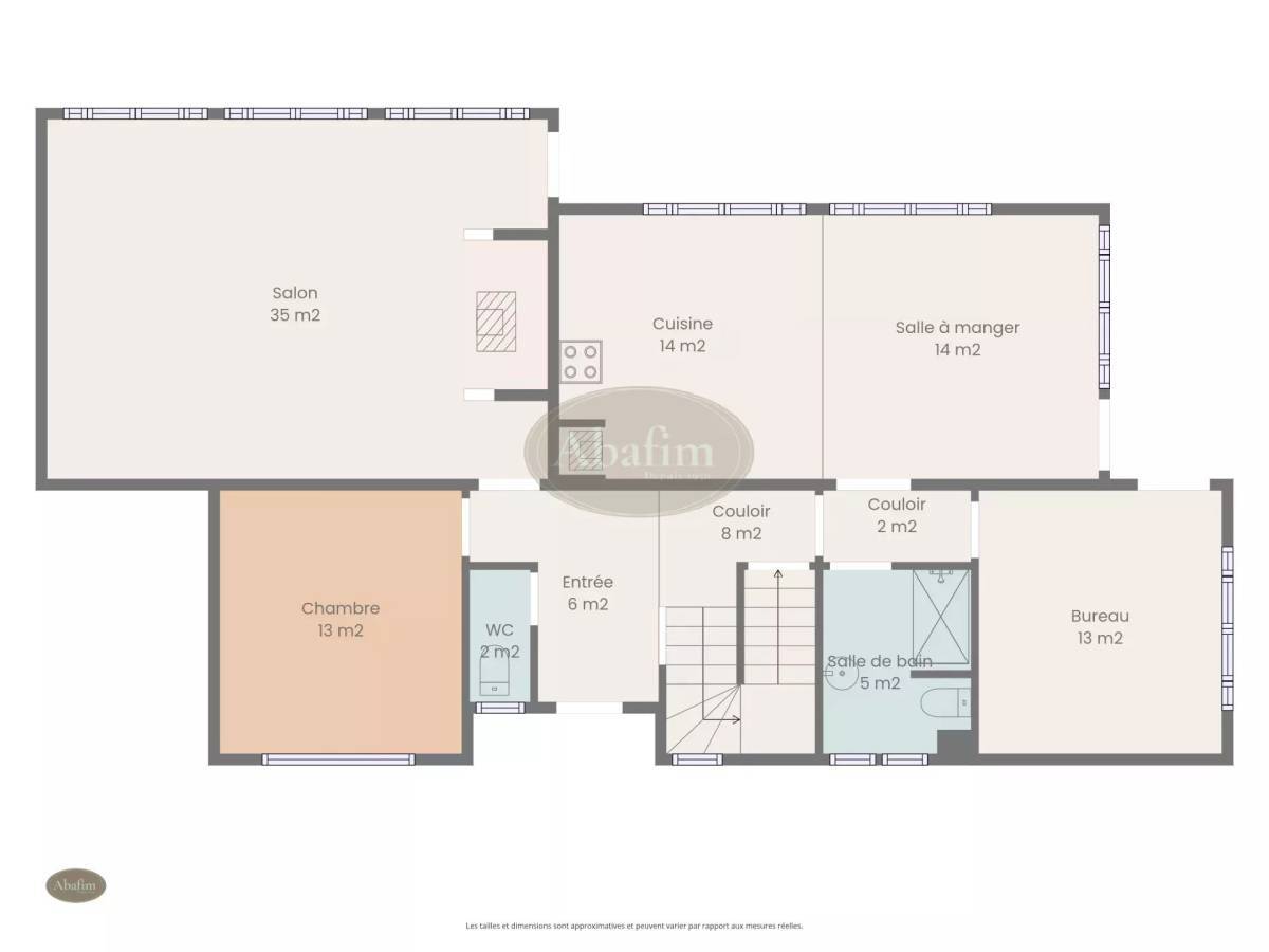 An impressive wooden staircase leads to the space under the rafters and has high ceilings. You’ll enjoy four more bedrooms (2 x 14 m², 17 m² & 20 m²) and an attic space (19 m²).