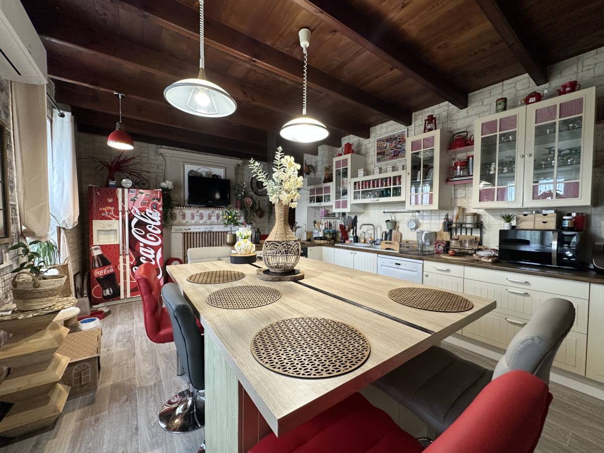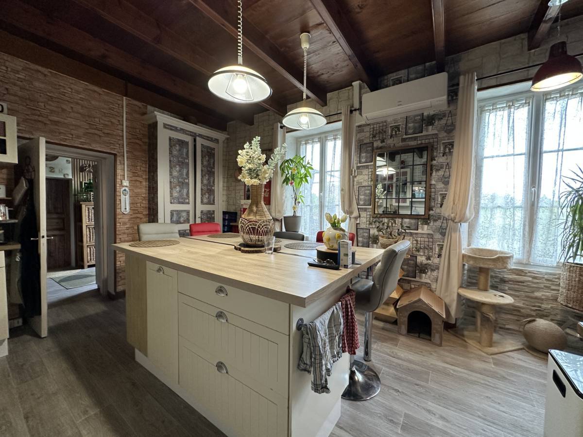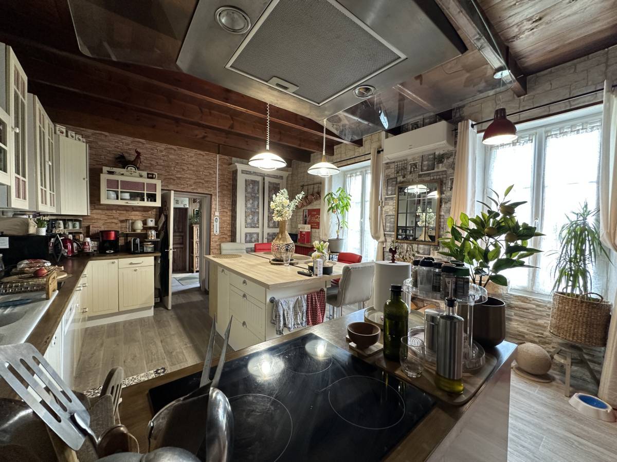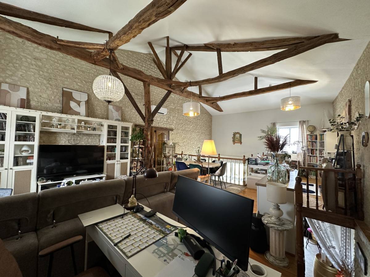 10 minutes south of Barbezieux, this house of approximately 252 m2 of living space is located in a calm and green environment, on an enclosed plot of approximately 4600 m2. The air-conditioned living room, measuring over 40 m2, boasts generous volumes under the exposed beams. The kitchen is fitted with a central island.