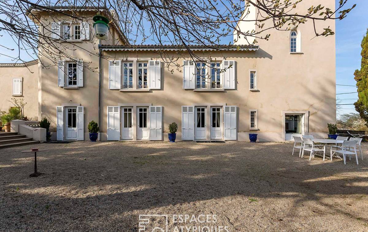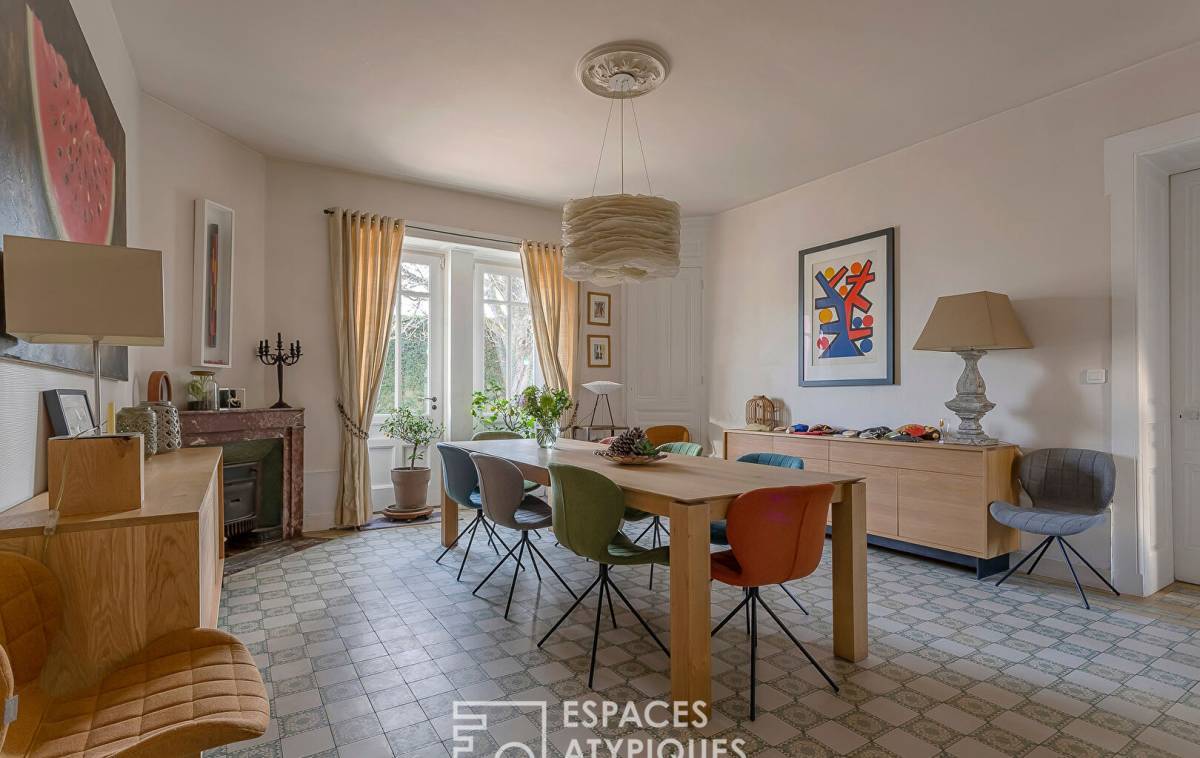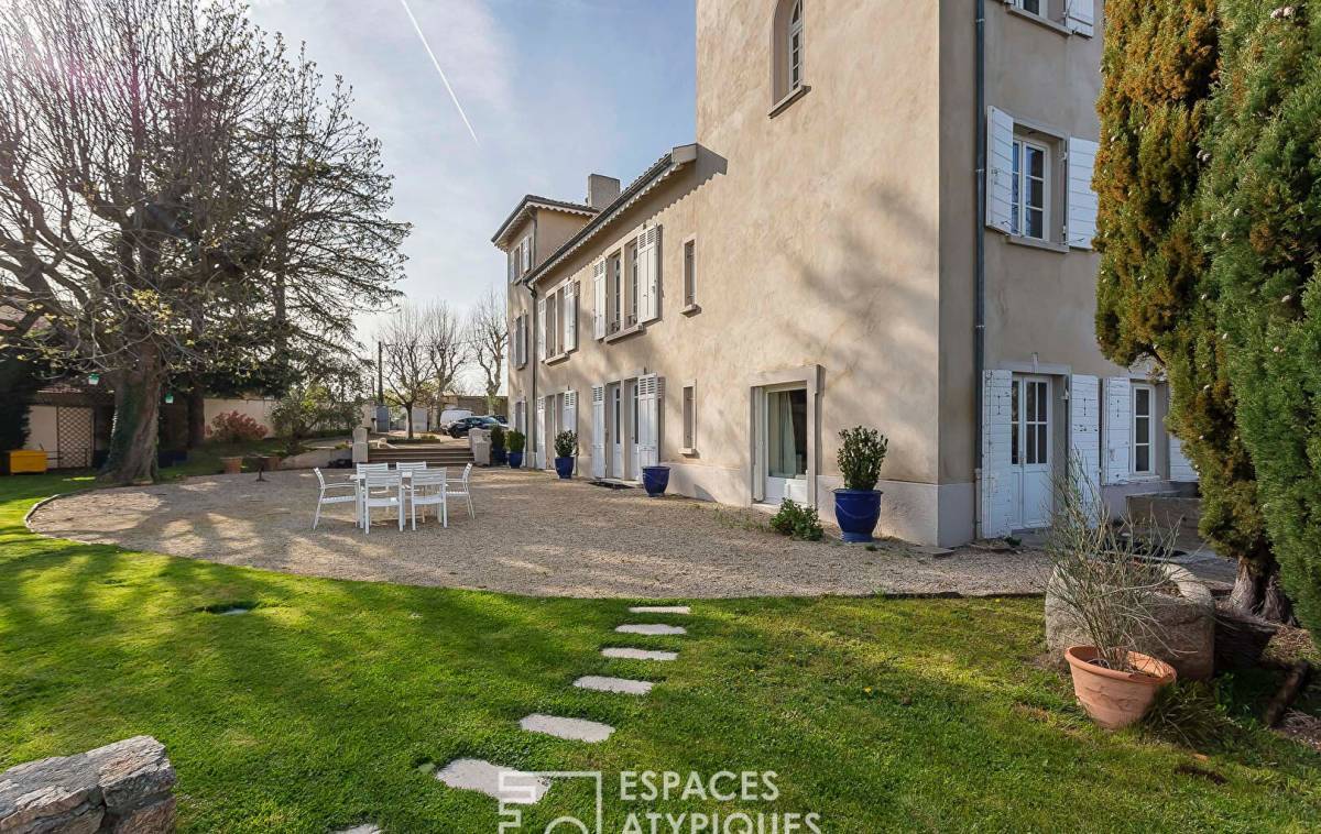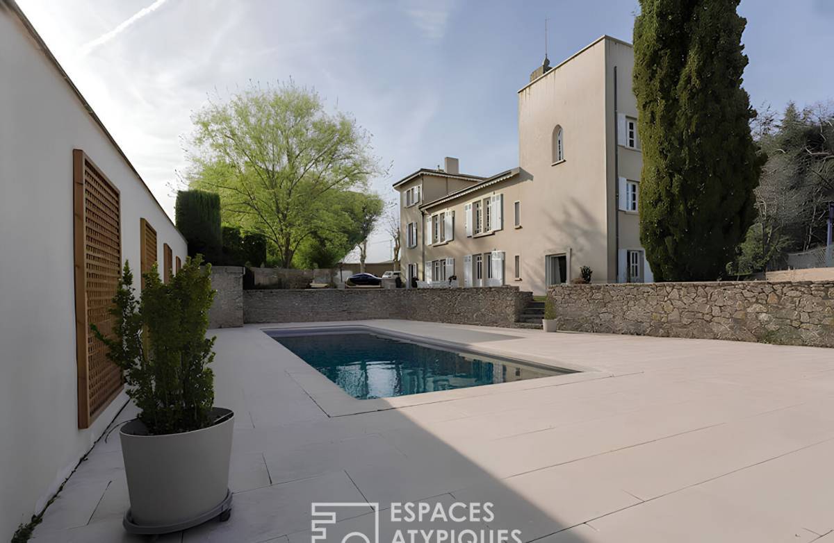 Nestled in a green setting in the popular town of Chaponost, this sumptuous 17th century residence displays all its charm over 320 sqm of living space. Carefully renovated, it combines authenticity and modernity in perfect harmony, on a beautiful plot of 1370 sqm. From the entrance, the eye is captivated by the generous volumes and period materials enhanced by a characterful renovation: Majestic staircase, cement tiles, old beams and monumental fireplaces breathe a unique soul into this timeless place. The ground floor opens onto a vast living room bathed in light, where a warm lounge rubs shoulders with an elegant dining room. The semi-open kitchen, fully equipped, subtly combines old and contemporary. An office completes this level, offering comfort and privacy. Upstairs, a beautiful wooden staircase leads to a sleeping area composed of five bright bedrooms, including a second suite with shower room, as well as a family bathroom. Each room reveals breathtaking views of the garden and the surrounding nature. The second floor offers a sixth bedroom. An outbuilding of approximately 120 sqm remains to be redeveloped and will provide an independent part for an activity or to receive relatives. The exterior, a true haven of peace, unfolds on a landscaped plot with different areas of trees and a relaxation area invite serenity around a heated and secure swimming pool. Several parking spaces complete this garden. Ideally located close to amenities and a few minutes from Lyon, this rare residence will appeal to lovers of heritage and atypical spaces in search of a place full of history. ENERGY CLASS: E / CLIMATE CLASS: E Estimated average amount of annual energy expenditure for standard use, established from energy prices for the year 2022, as of January 1st