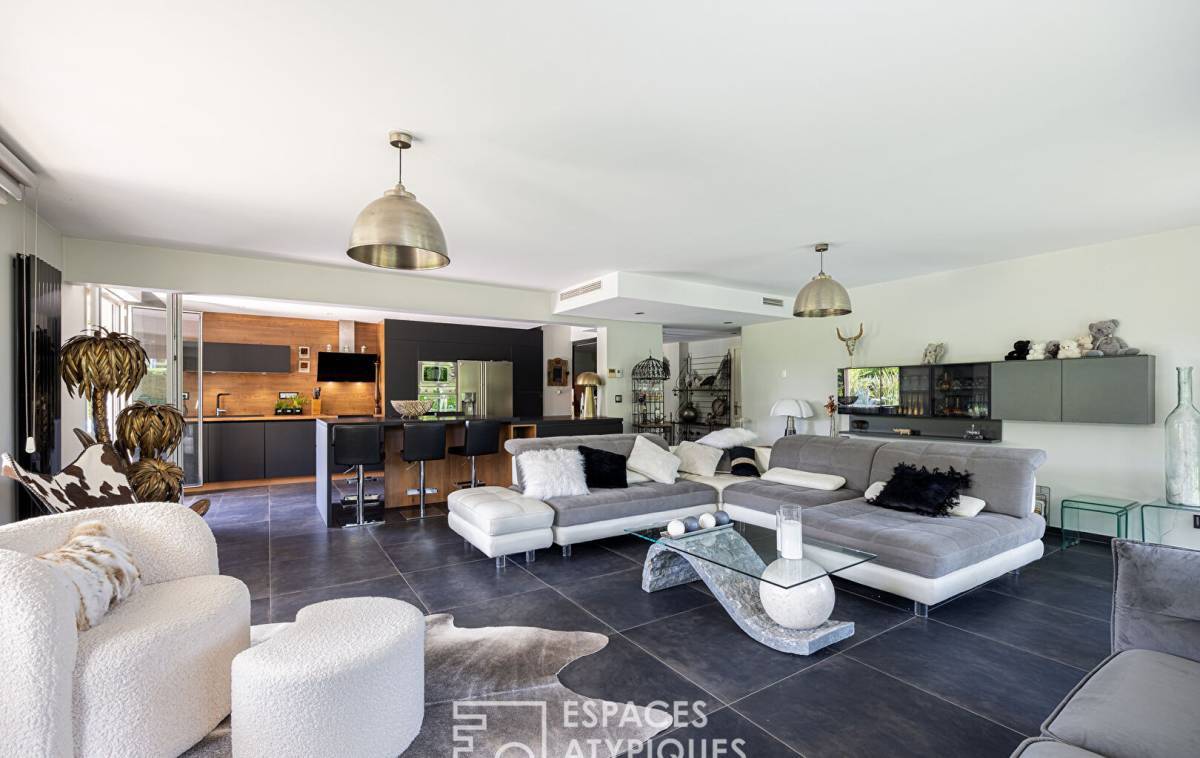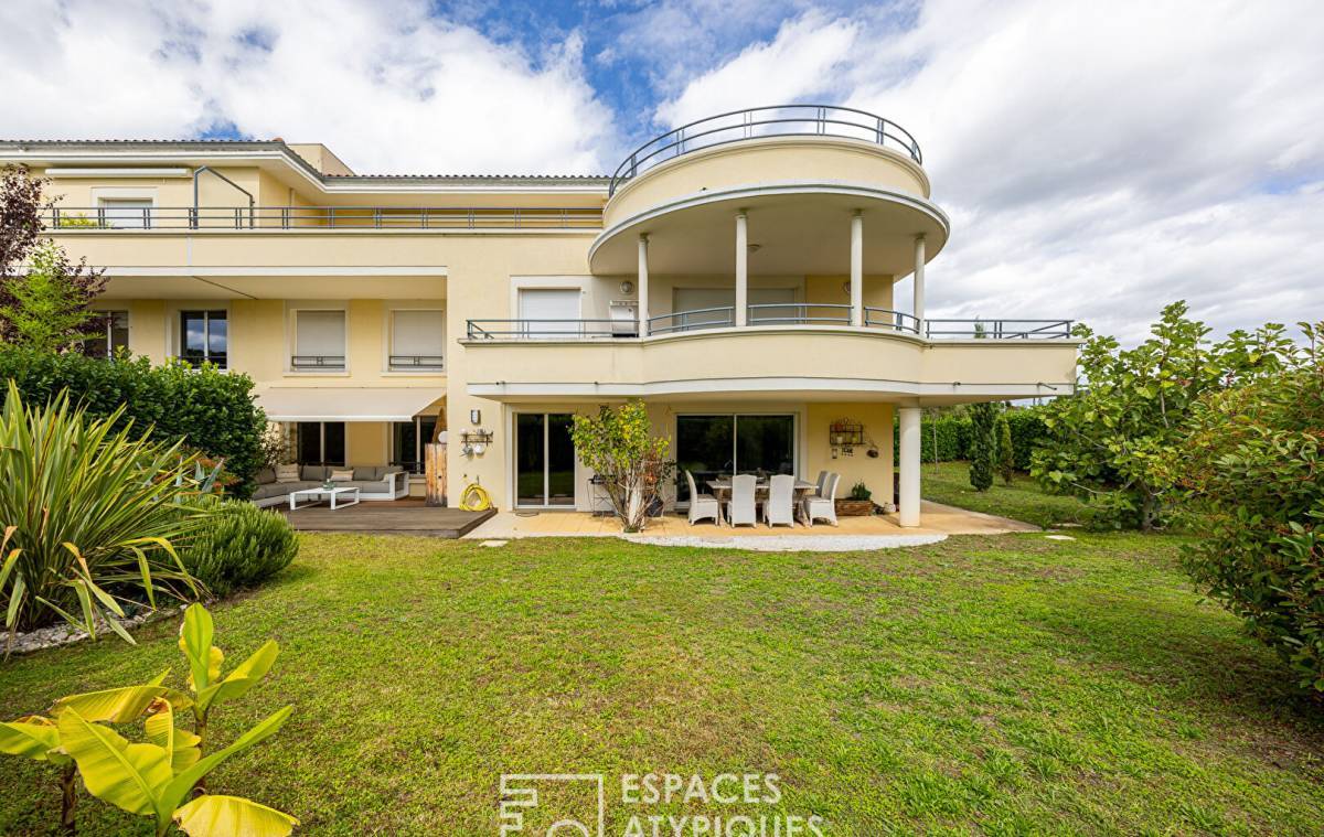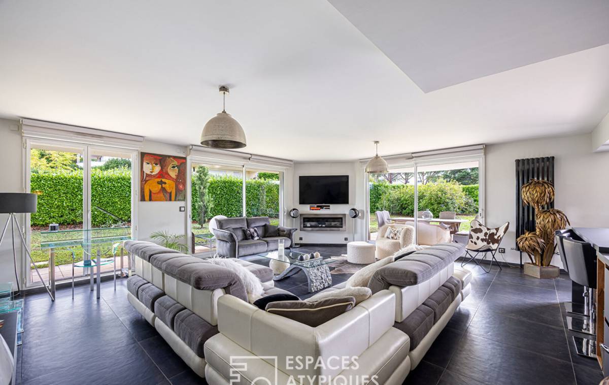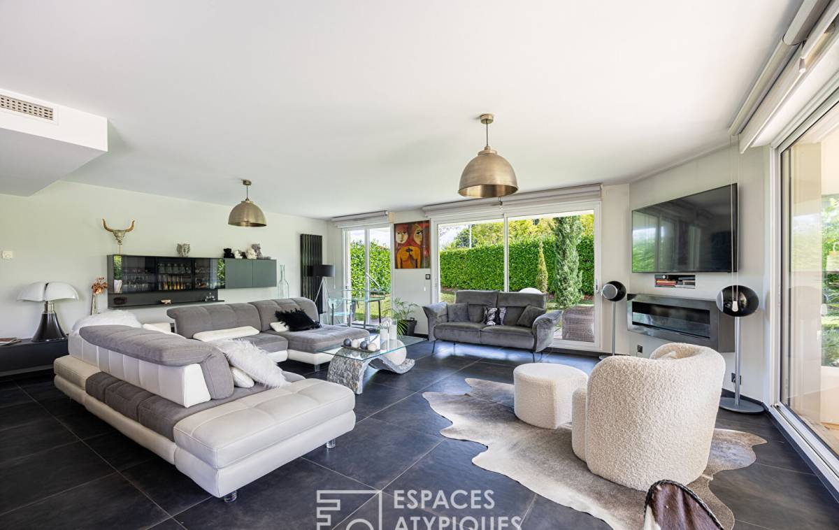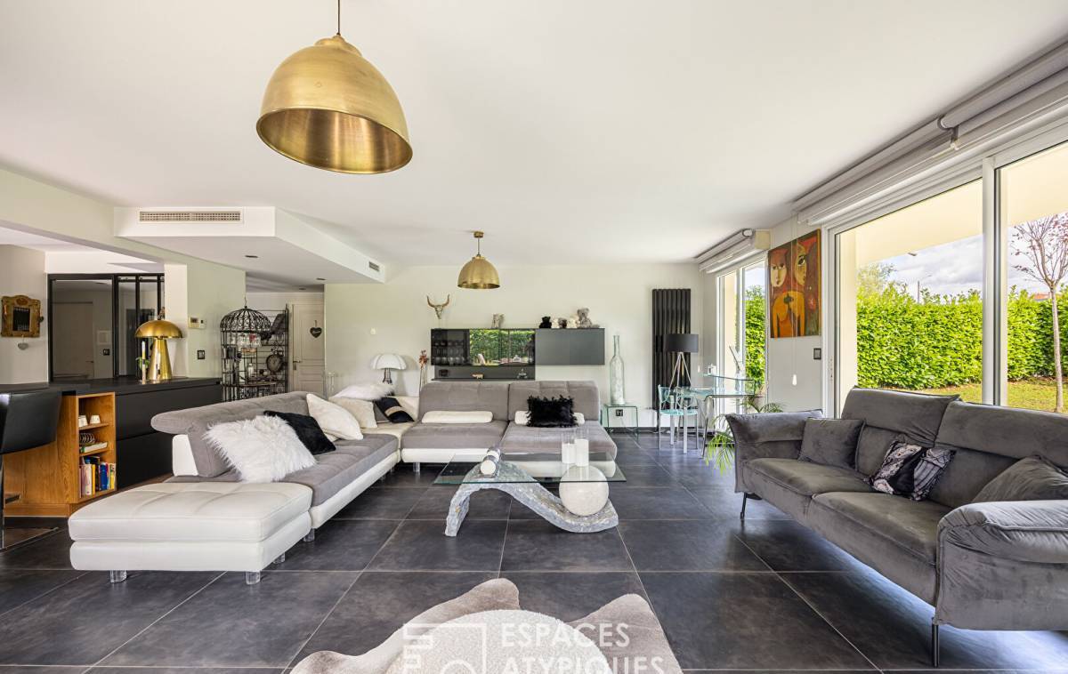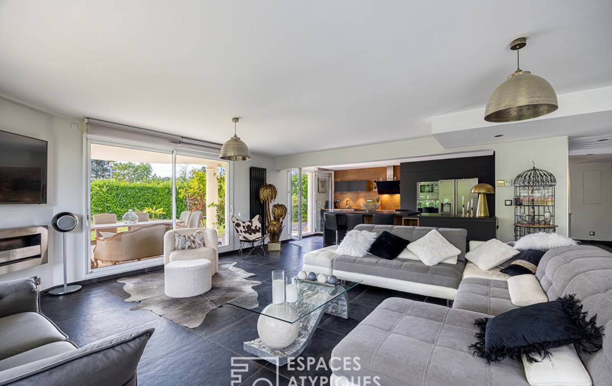 Located in Charbonnières-les-Bains, in the heart of a sought-after residential area, this 122 sqm garden-level apartment offers a unique living environment, combining modern comfort and serenity. Housed in a high-end residence with a swimming pool and tennis courts, it boasts a private 270 sqm south-east-facing garden, a true extension of the living space. The entrance opens onto a vast, light-filled living room, offering a smooth flow between the open-plan kitchen, dining area, and living room. The large bay windows offer a soothing view of the garden while ensuring natural light. The sleeping area offers two bedrooms, one of which is a suite with its own shower room and toilet. A second bathroom completes the layout. The layout is designed to offer both comfort and privacy, with optimized spaces and a warm atmosphere. The whole has recently benefited from a careful renovation, combining quality materials and soft tones. A favorite apartment in a sought-after condominium, this elegant and functional property, where generous volumes, quality services and calm harmonize with a green exterior. PMR garage and cellar included. Property subject to the status of the condominium. ENERGY CLASS: C / CLIMATE CLASS: C Estimated average amount of annual energy expenditure for standard use, established from the average energy prices indexed for the years 2021, 2022, 2023 (subscriptions included) between EUR1560 and EUR2180