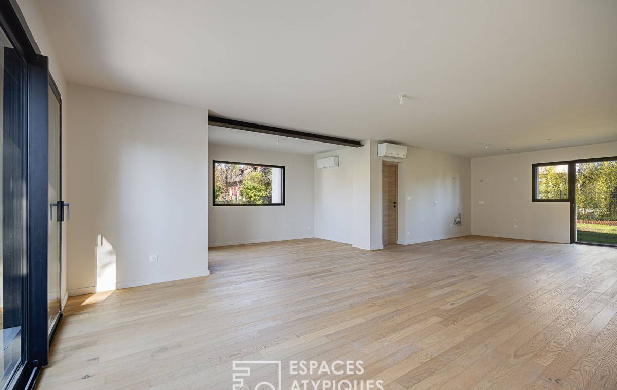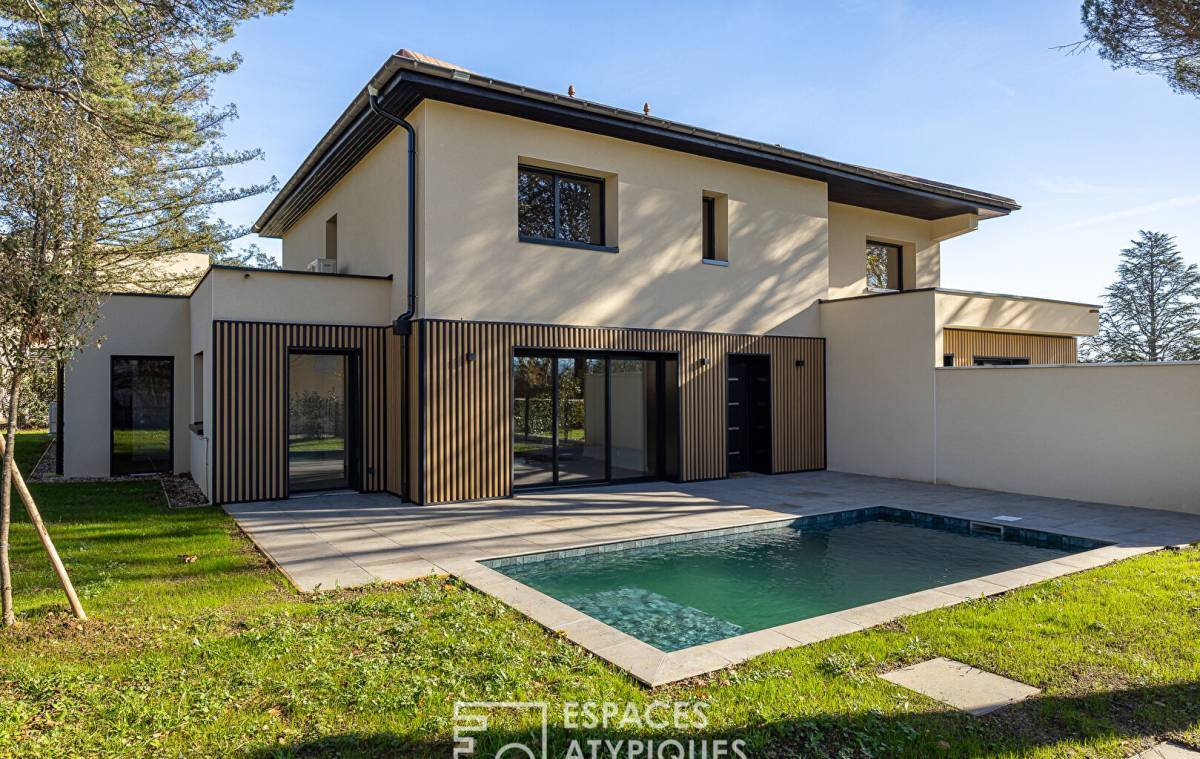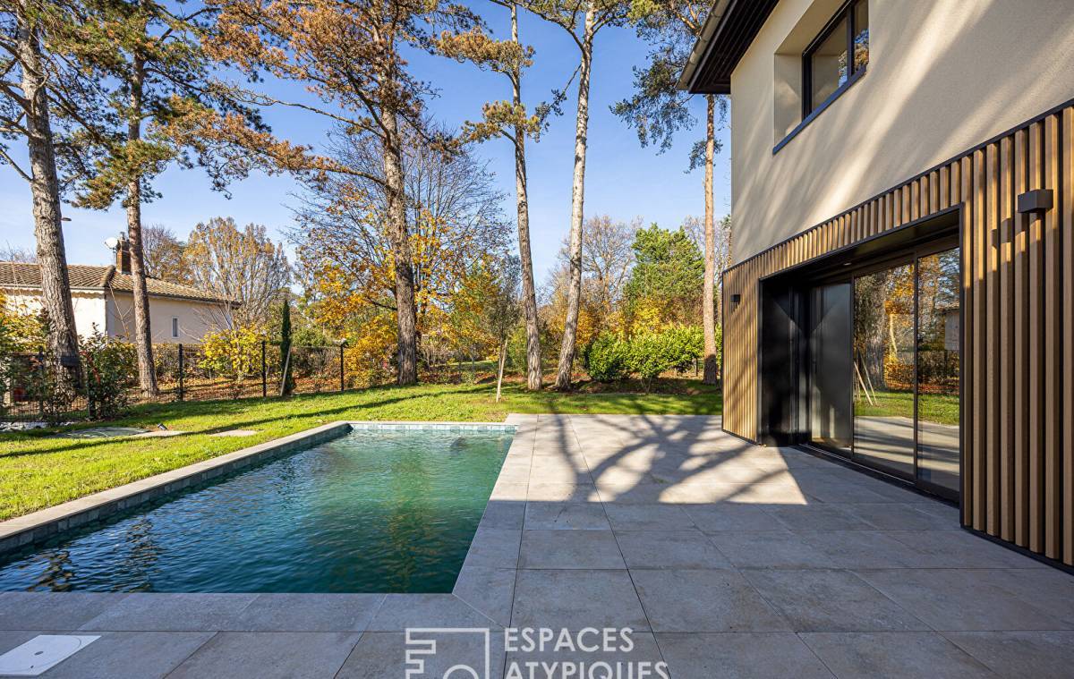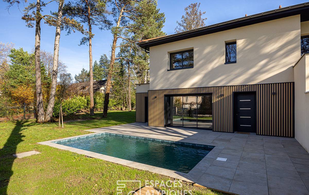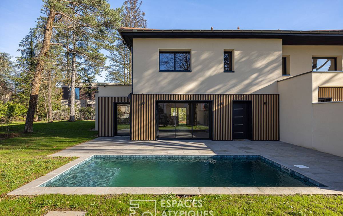 Nestled in a leafy and secluded setting, just steps from the center of Charbonnières-les-Bains, this 150 sq m family home on a 763 sq m plot combines refinement, serenity, and modern comfort. The entrance opens onto the landscaped garden, a true haven of peace, where the 6 x 3 m swimming pool and terraces create an intimate and soothing atmosphere. Here, tranquility becomes a daily occurrence, and every moment spent outdoors is experienced as a serene interlude. On the ground floor, the 58 sq m living room, with its east/west orientation and abundant natural light, invites conviviality and relaxation. The master suite, with its custom-built dressing room and walk-in shower, offers a true private retreat. A laundry room and toilet complete this level. Upstairs, three large bedrooms, a bathroom, and a toilet comprise the sleeping area, providing comfort and functionality for the whole family. Modern comfort is ensured by heat pump heating and full air conditioning, while the meticulous renovation and quality materials give the house a refined and enduring style. Parking spaces complete this exceptional property. This rare address combines the tranquility of a private setting, the beauty of a garden with a swimming pool, and the convenience of living in close proximity to the town center. A unique place where luxury rhymes with serenity. ENERGY RATING: A / CLIMATE RATING: A Estimated average annual energy costs for standard use, based on energy prices for 2021, 2022, and 2023: between EUR780 and EUR1130.
