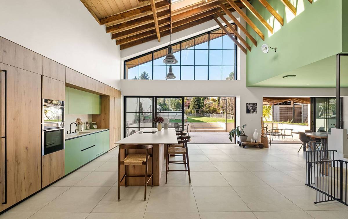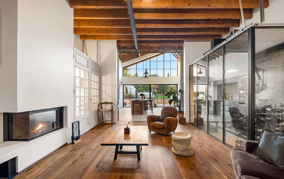 In the heart of Charly, this former factory, reinvented as an architect-designed home, unfolds its 310 square meters of living space in a subtle balance between loft-style design and contemporary comfort. Here, the strength of the industrial structure blends with the warmth of wood and abundant natural light.