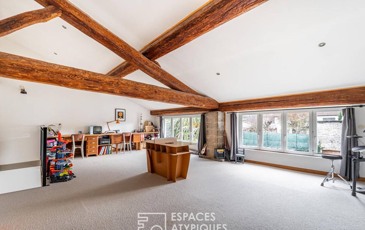 Upstairs, a large, versatile 40 sq m (430 sq ft) room offers a wide range of possibilities: playroom, office, creative studio, or private lounge.