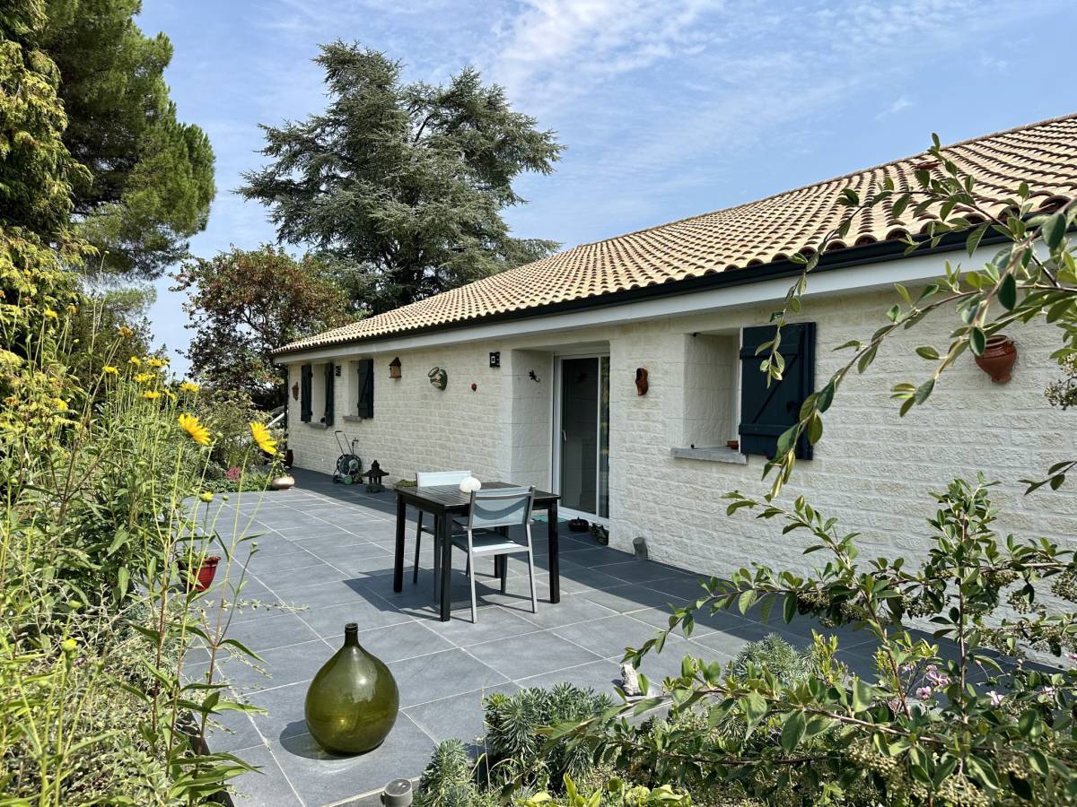 The successful landscaping at the rear contributes to a beautiful atmosphere. A garage and a small wooden outbuilding complete this beautiful ensemble. It is in impeccable condition, ideal for a family wishing to enjoy the peace and quiet of the countryside while remaining close to the amenities of Jonzac.
