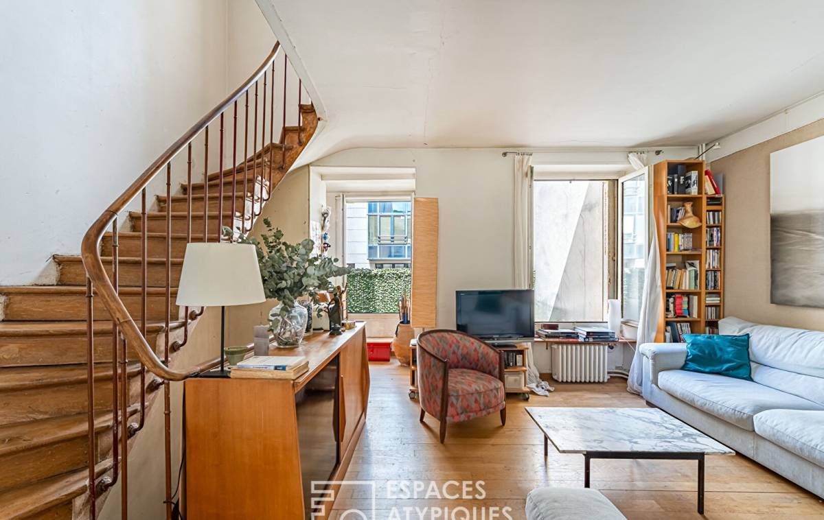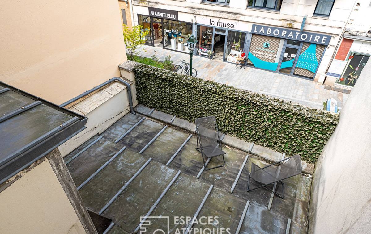 This co-owned property, which feels like a home, has its own independent entrance. With no co-ownership fees, it captivates with its character, family-friendly layout, and great potential. Renovation is required to fully reveal this property's charm, and an extension is being considered, which is currently being reviewed by the town planning department. A rare property for those seeking a home-like atmosphere in the city center, in a living environment that is practical, vibrant, and privileged.