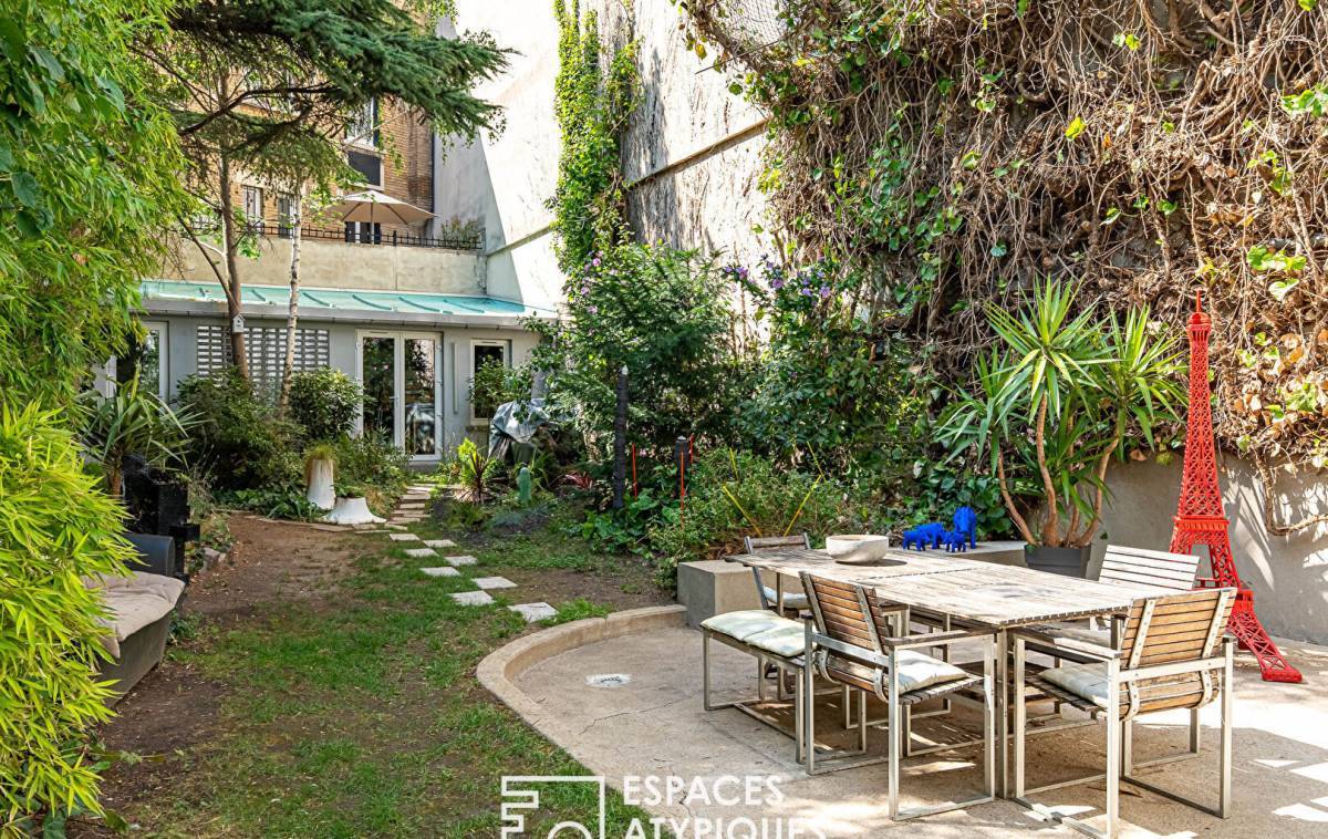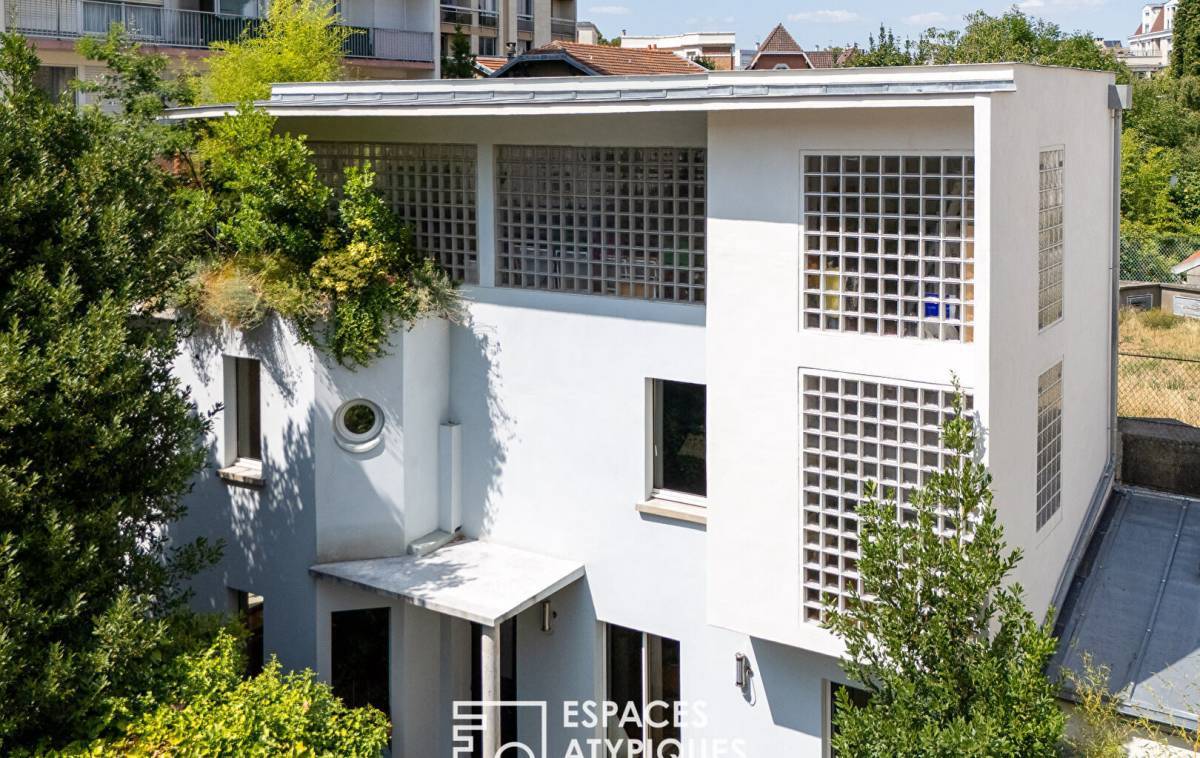 Nestled away from view at the back of a condominium, this modernist-inspired house evokes the clean lines and avant-garde spirit of architect Robert Mallet-Stevens, an iconic figure of 20th-century architecture. Nestled in a green setting, a stone's throw from Clamart train station and all amenities, it features a geometric silhouette, playing with light and space.