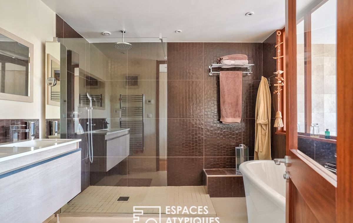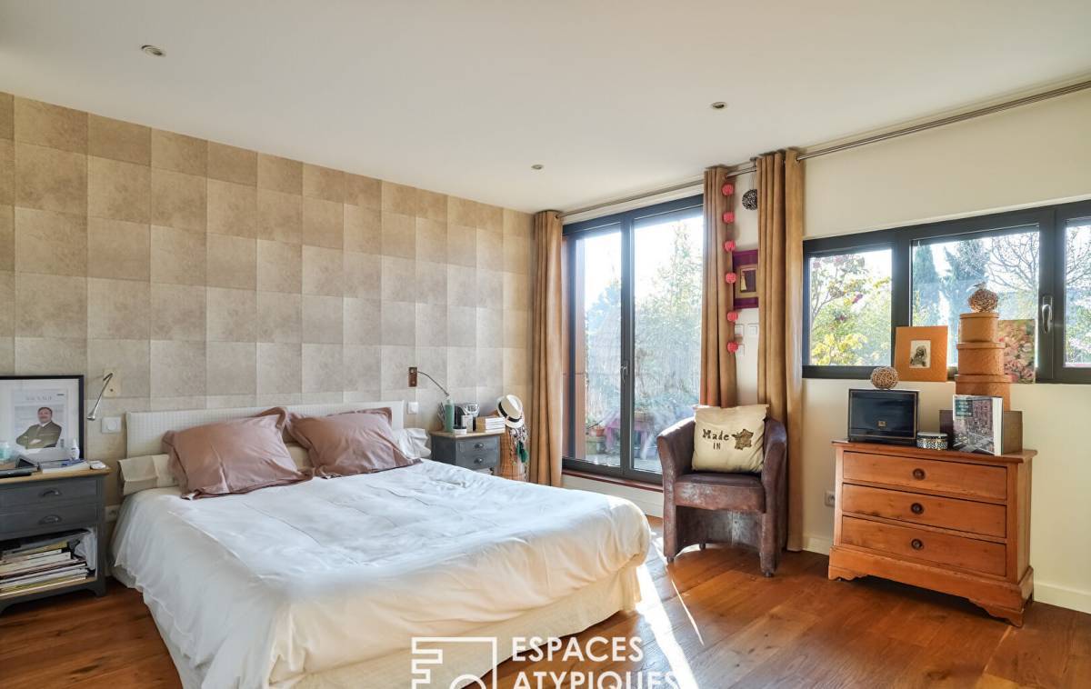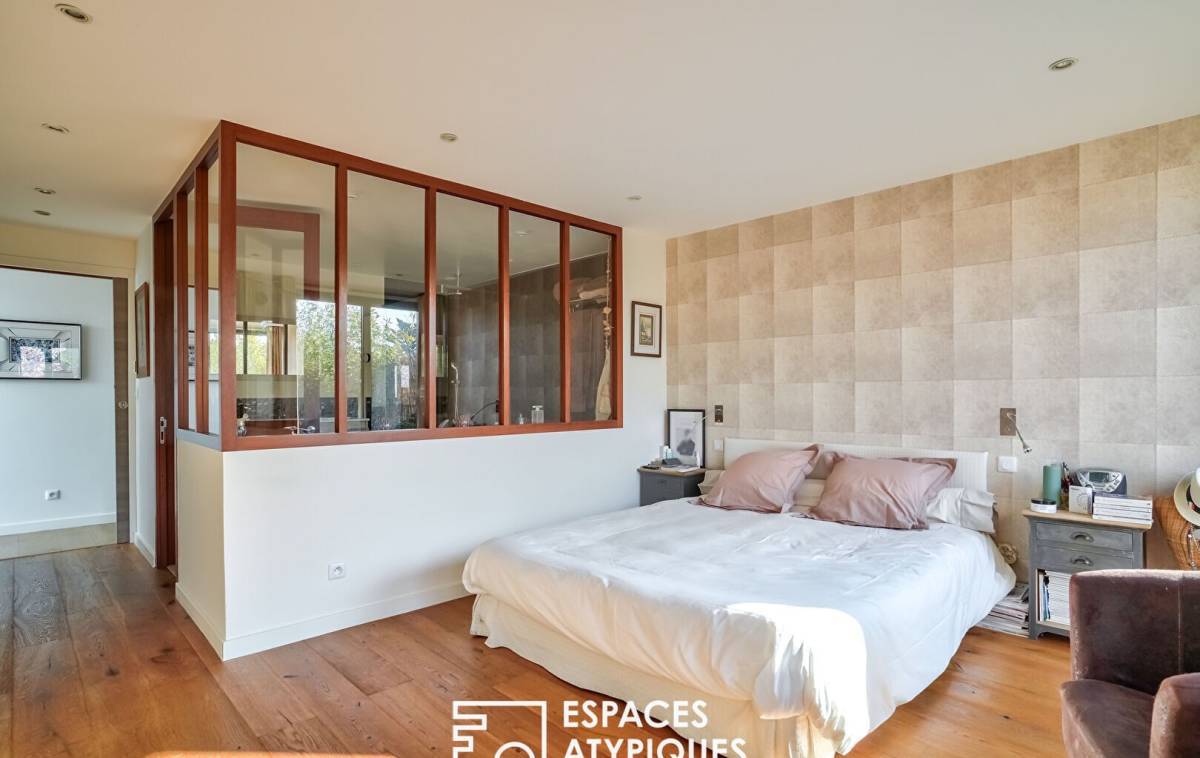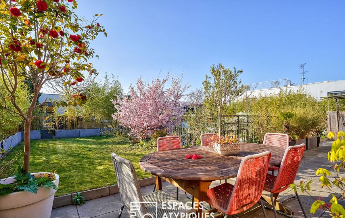 In the sought-after Hoche neighborhood, located on the 2nd and top floor of a gated and secure residence, this 144m² (Carrez law) loft, redeveloped from a former marble factory, captivates with its industrial character, its glass roof, and its 100m² (1,184 sq ft) west-facing rooftop terrace.