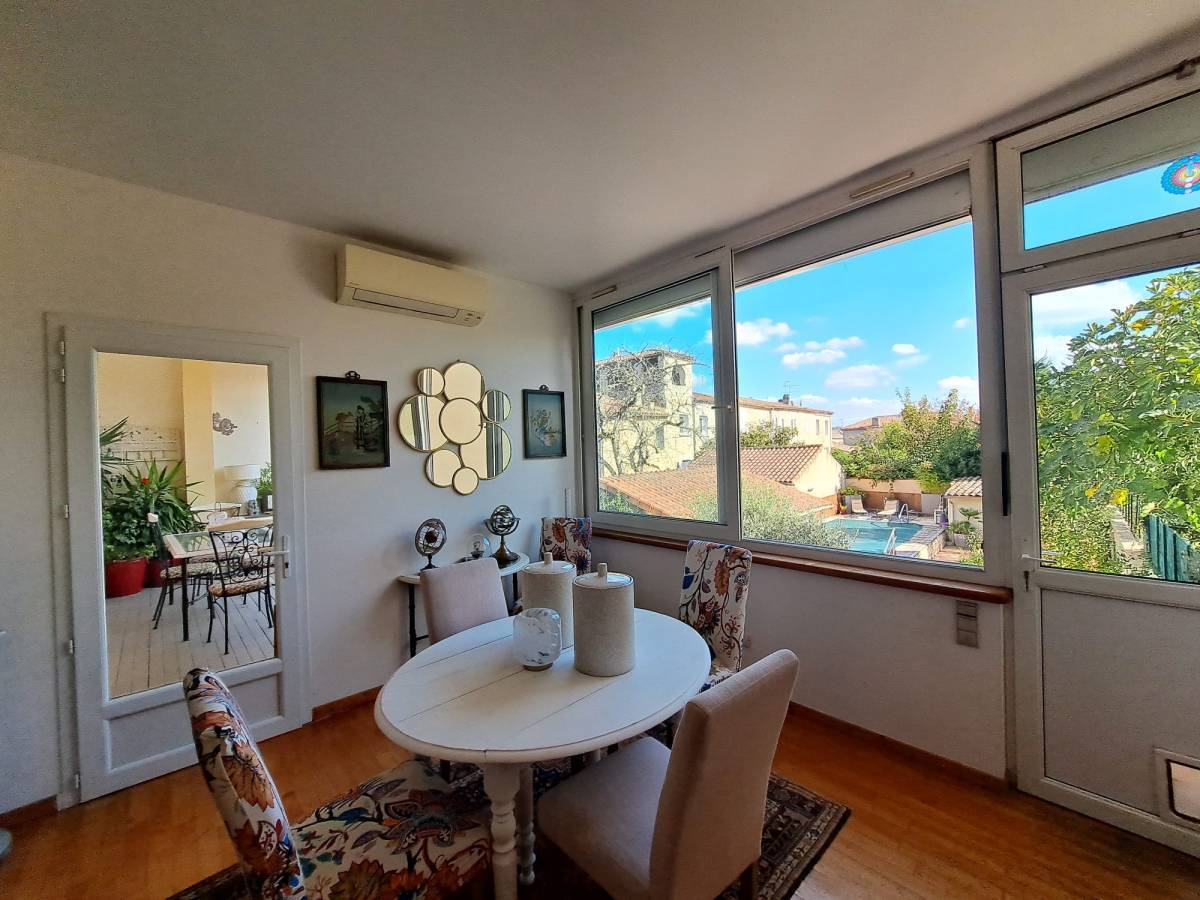 On the ground floor, you'll find a self-contained apartment that can easily be integrated into the main house. It includes an entrance hall, a fully equipped kitchen, a dining room, a living room, a bedroom opening onto a loggia, and a bathroom.