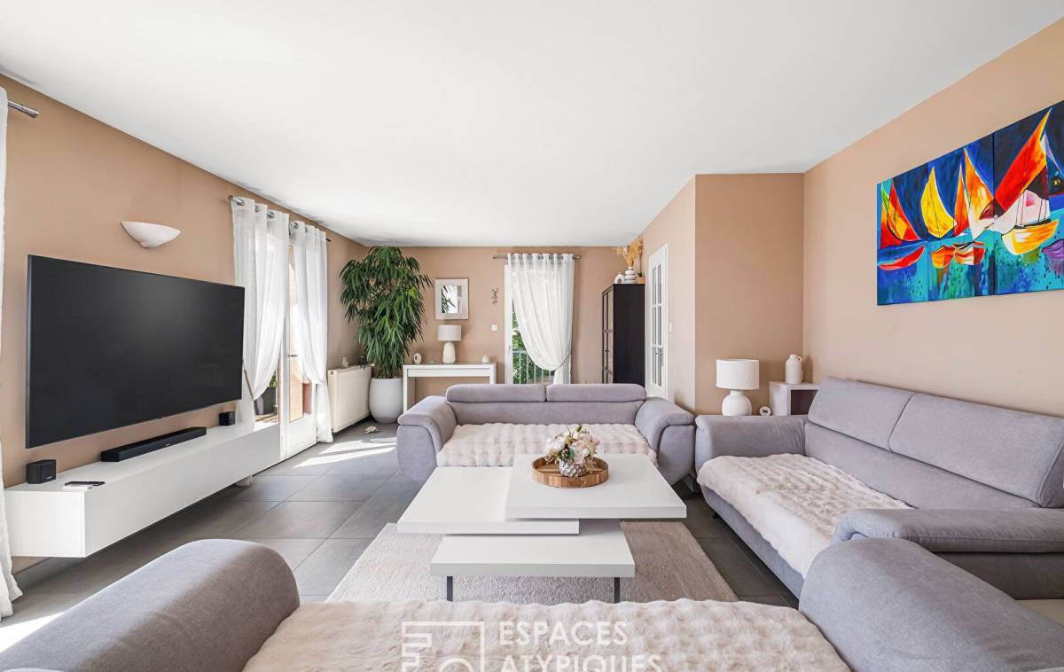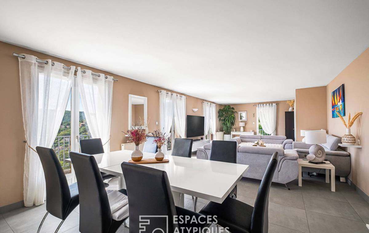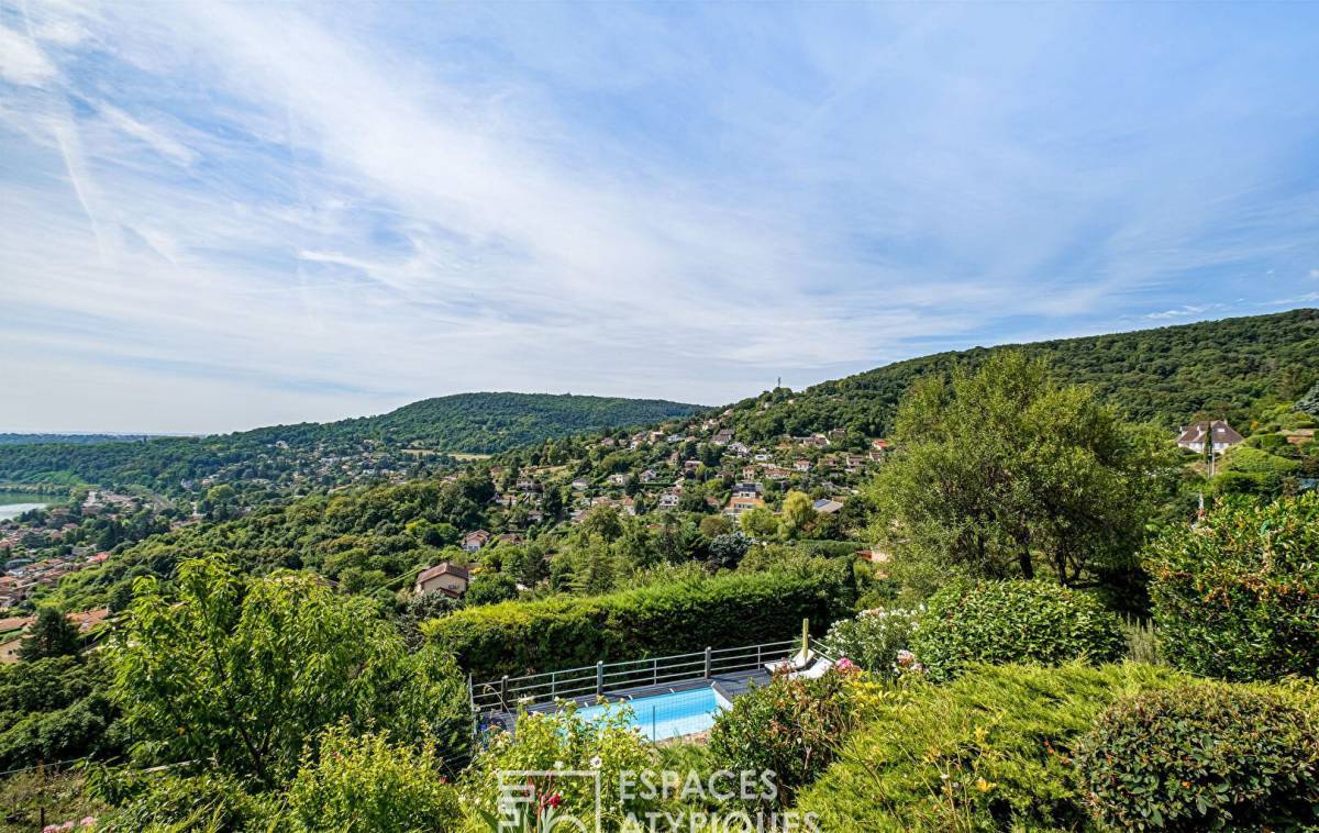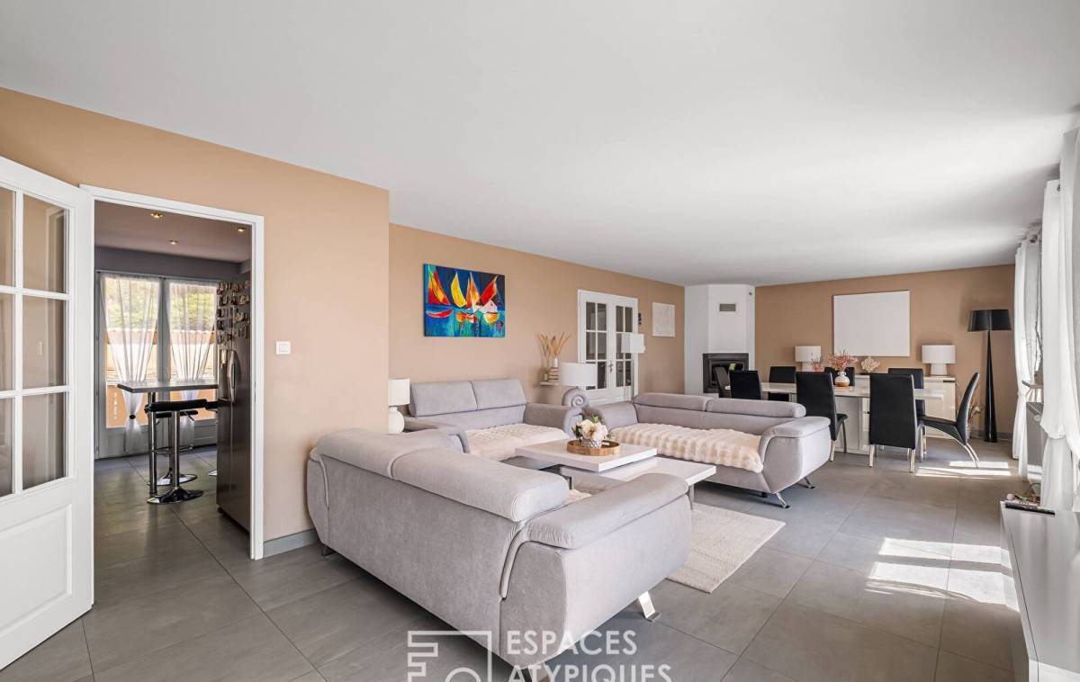 Perched on the heights of Couzon-au-Mont-d'Or, this family home offers 215 m² of living space on a 1,121 m² plot, with breathtaking panoramic views over the Saône Valley.