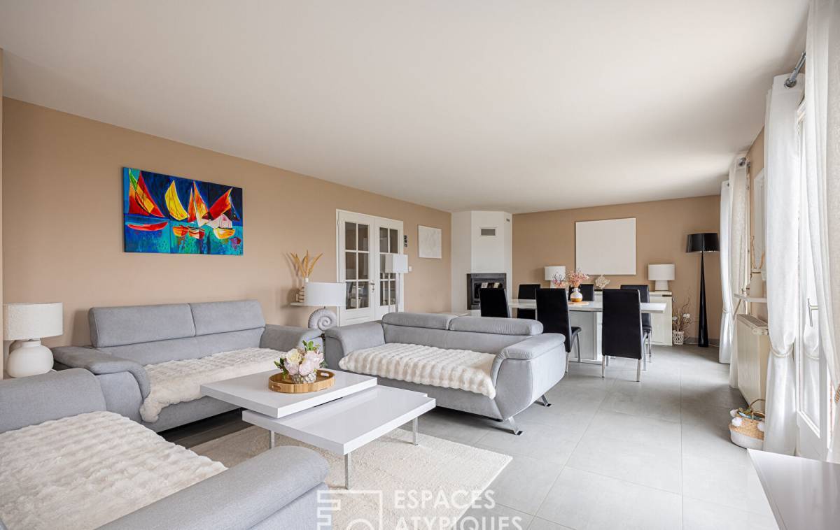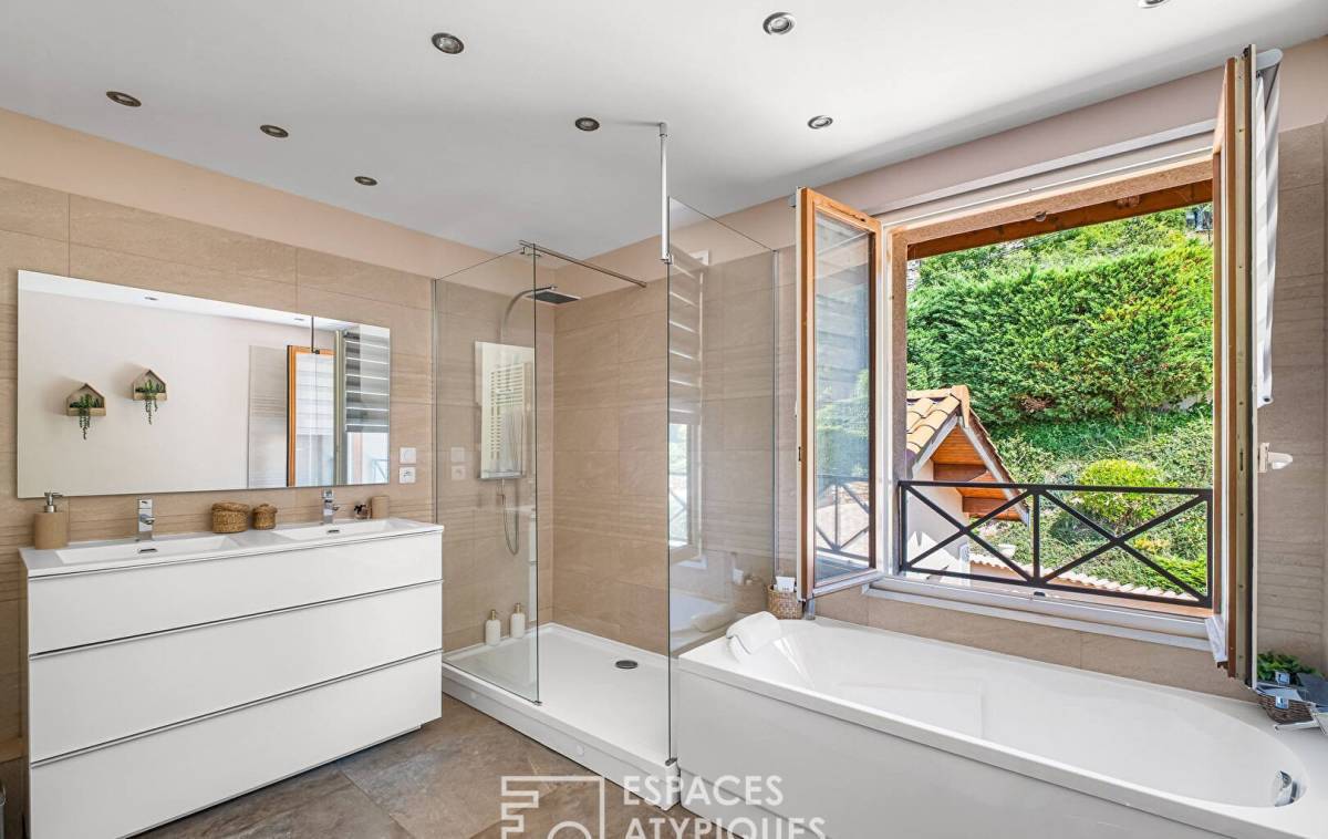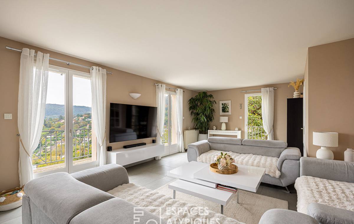 Perched on the heights of Couzon-au-Mont-d'Or, this family home offers 215 m² of living space on a 1,121 m² plot, with breathtaking panoramic views over the Saône Valley.