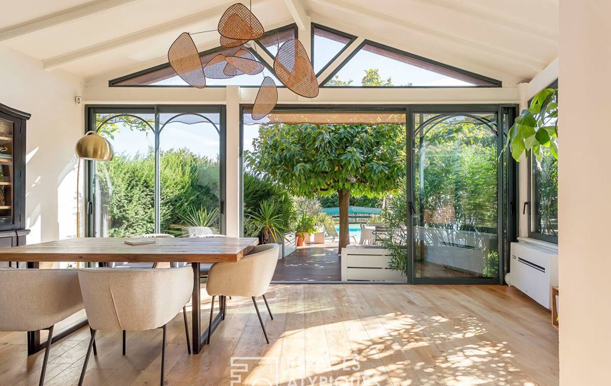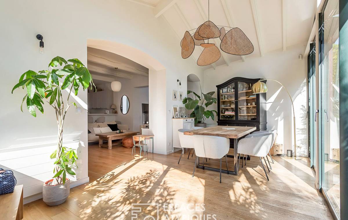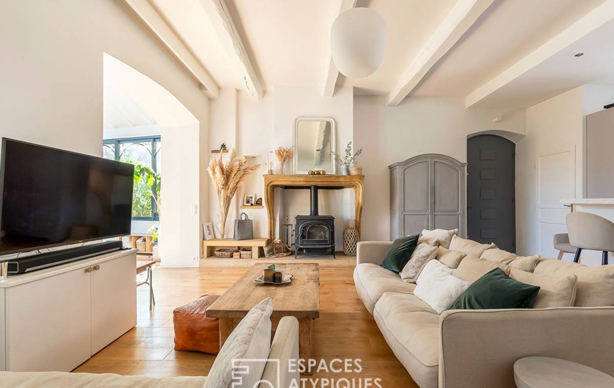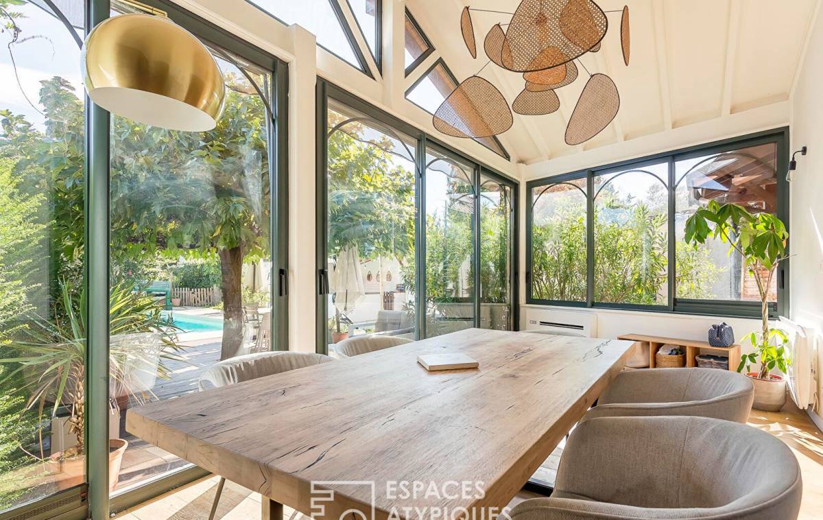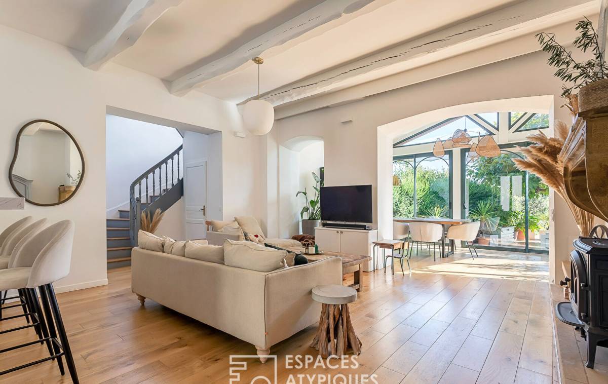 Located in Crépieux, in a residential environment prized for its calm and greenery, this old house, completely renovated in 2020, offers 170 sqm of living space on three levels, in the heart of a 655 sqm wooded plot with a swimming pool. The ground floor features a generously sized living room bathed in light thanks to large openings onto the garden. The fully equipped kitchen, open to the living room, reinforces the pleasantness of a convivial and fluid space. The first floor serves three generously sized bedrooms as well as a sober and elegant bathroom. On the top level, the master suite occupies the entire floor, with an adjoining bathroom and a custom-made dressing room, creating an independent cocoon conducive to tranquility. The enclosed and landscaped grounds offer a real breath of fresh air in the heart of the city. The swimming pool blends harmoniously into the whole, surrounded by wooded terraces ideal for relaxation. The through exposure, the interior volumes and the exterior fittings give this house a rare balance between comfort, functionality and character. A property of character, at the crossroads of authenticity and contemporary, which will seduce with its green setting, its careful renovation and its services adapted to a family life in search of serenity, while remaining close to amenities and access to Lyon. Parking for several cars. Air-conditioned house. Solar panels. ENERGY CLASS: D / CLIMATE CLASS: B. Estimated average amount of annual energy expenditure for standard use, established from energy prices for the year 2025: between EUR2320 and EUR3230.
