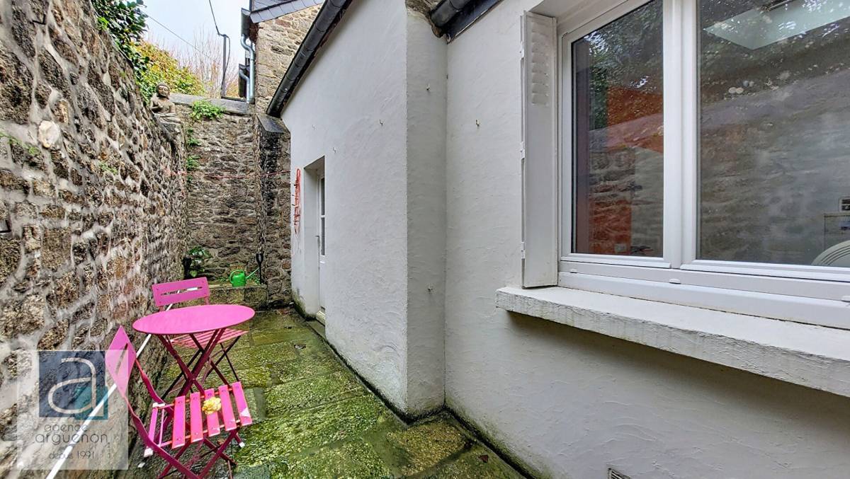 SOLE AGENCY: Located in one of the most sought after residential streets in the Historic centre of Dinan this detached stone built townhouse will captivate you with it's charm and character. Within easy walking distance of all of the excellent amenities and facilities that the town has to offer the property would make an ideal principal residence or equally a perfect 'lock-up and leave' holiday home. Lovingly refurbished and improved over recent years by the current owner the property offers light and bright accommodation throughout and retains many of it's charming original features. The property is double glazed throughout and benefits from town gas central heating and mains drainage. The ground floor comprises an entrance hallway with original floor tiles leading to an open plan living / dining room with lovely stone walls which continue throughout the house and a feature fireplace with wood burner, a modern fitted kitchen with skylight, an arrière-cuisine with accessible and usable attic space above and a WC. A wonderful original oak staircase leads to the first floor landing with WC and two double bedrooms one with a private and recently refurbished shower room. The oak staircase continues to the second floor which provides a third double bedroom with built in cupboards and a family bathroom with WC. The property also benefits from a small courtyard to the rear, ideal for 'Apero Hour'. A lovely property in ready to move into condition and rare to market. (4.00 % fees incl. VAT at the buyer's expense.)