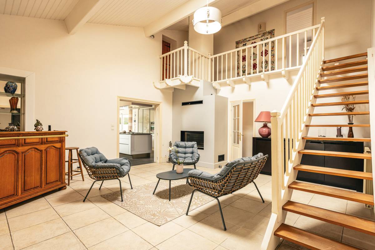 ETAULES (17) ? Quiet residential area In the heart of a wooded environment, this beautiful timber-framed building offers over 300 m2 of living space on an enclosed plot of 1906 m2 with a swimming pool.