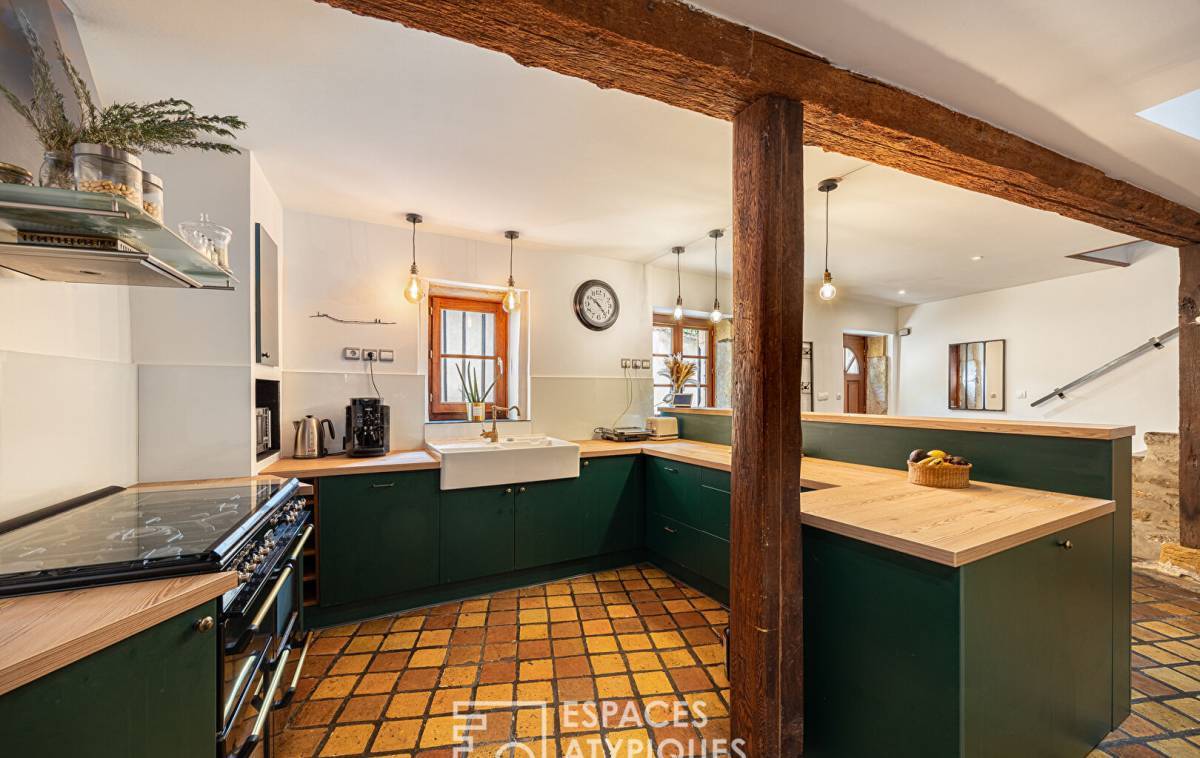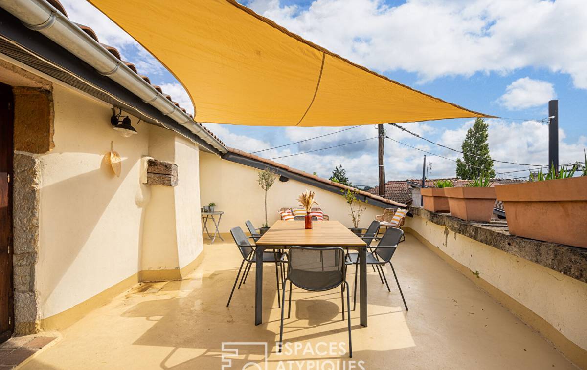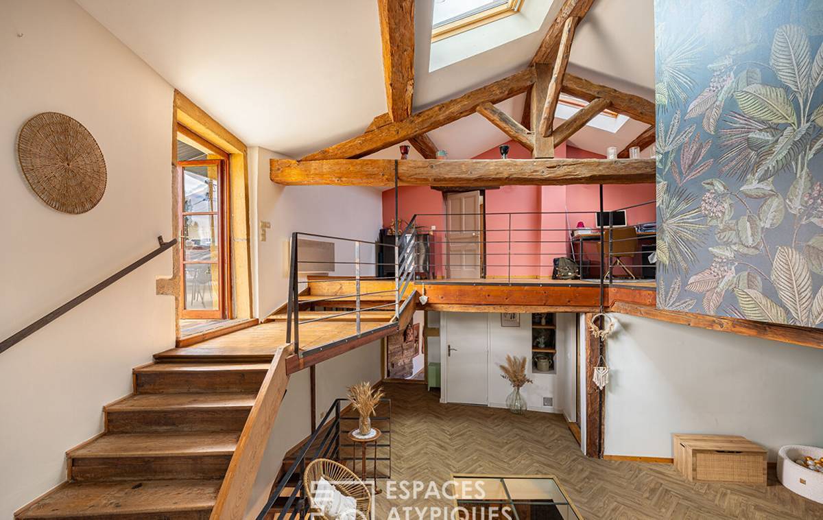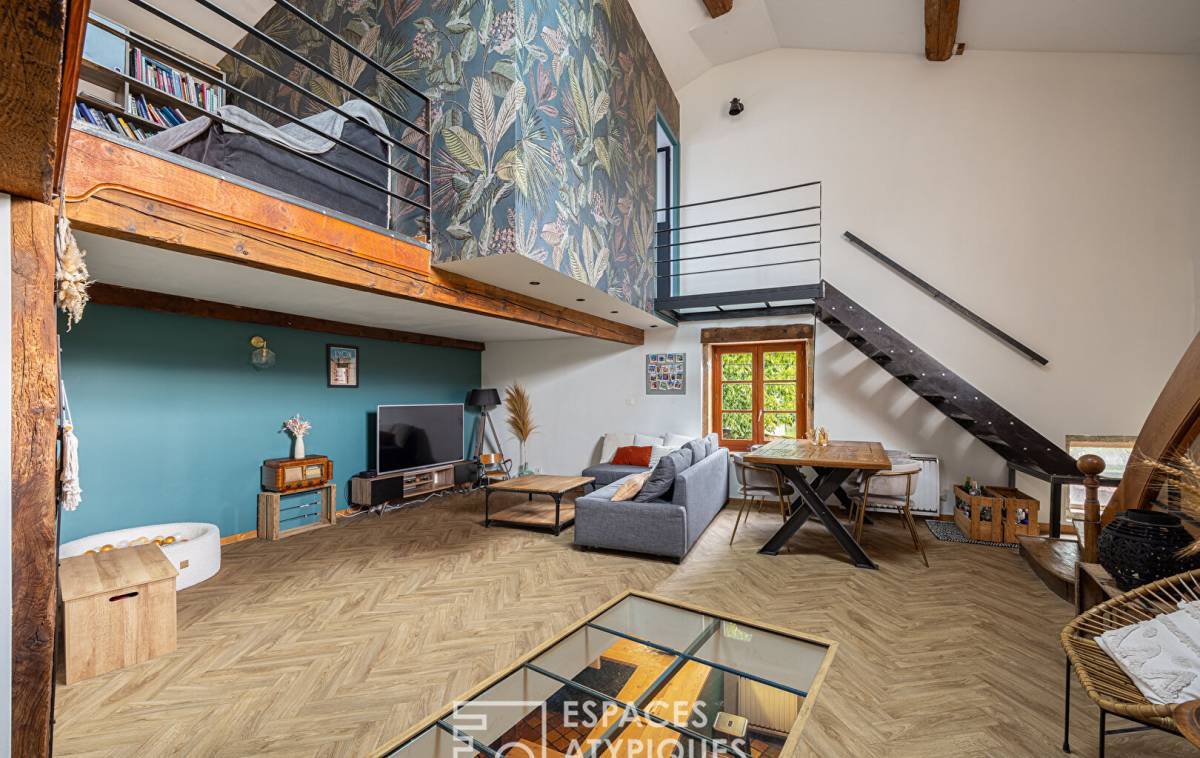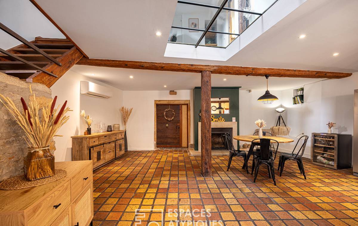 Located in the commune of Fontaines-Saint-Martin, just 15 minutes from Lyon, this former 1850 farmhouse has been completely renovated to become a 220 sqm triplex loft house.