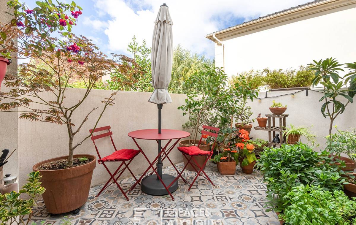 Outside and accessible from the 1st floor, a 10 sqm terrace, intimate and sheltered from view, offers itself like a green setting in the sky.