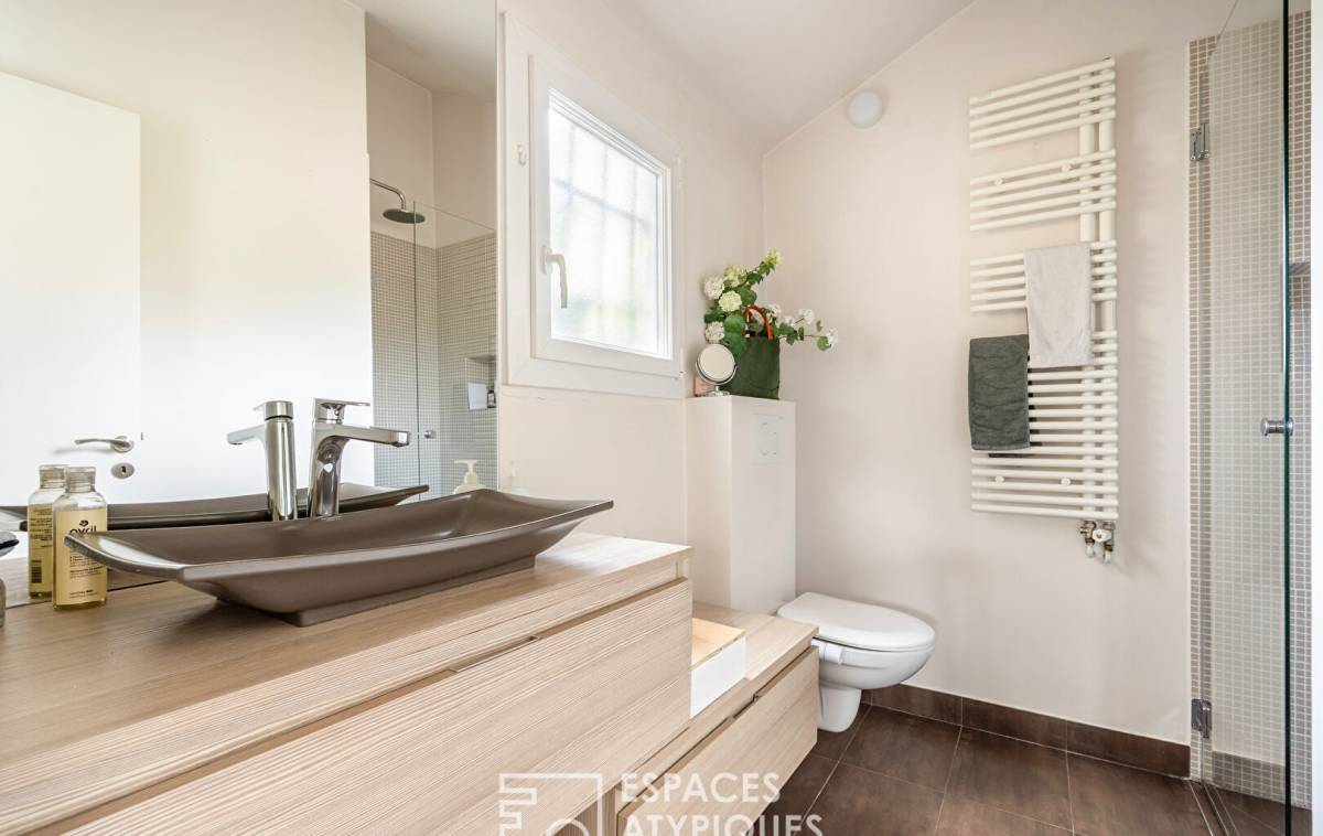 In a residential neighborhood in Fontenay-sous-Bois, this completely redesigned 1930s house offers 156 sqm of living space spread over three levels. Bathed in natural light, it embodies a truly timeless property, designed as a cocoon in the heart of the city.