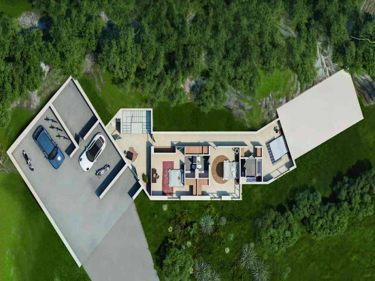 Interiors: Approximately 374 m² of airy, light-filled living space, expanding to 667 m² with terraces and ancillary areas.