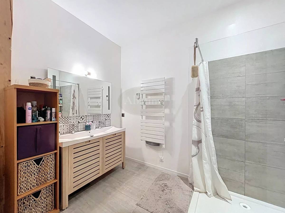 The tone is set as you enter this home and its 40m² living area comprising a cosy sitting room, dining area and 23m² open kitchen. The cosy atmosphere is reinforced by the pellet burner and charm via the terra cotta flooring and visible beams. The 21m² wooden terrace is south-facing and increased the living space.