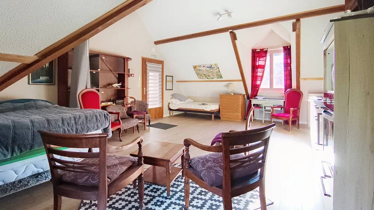 Upstairs, a 43 m² studio offers a pleasant terrace with mountain views.