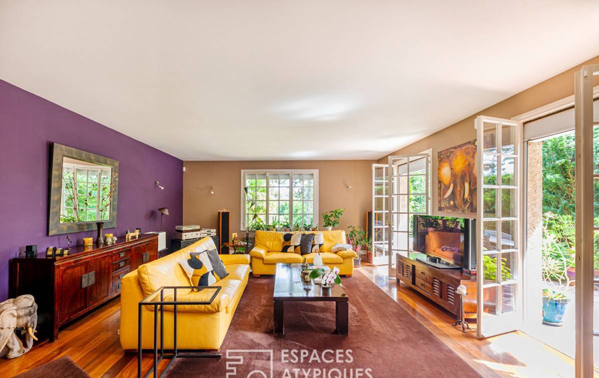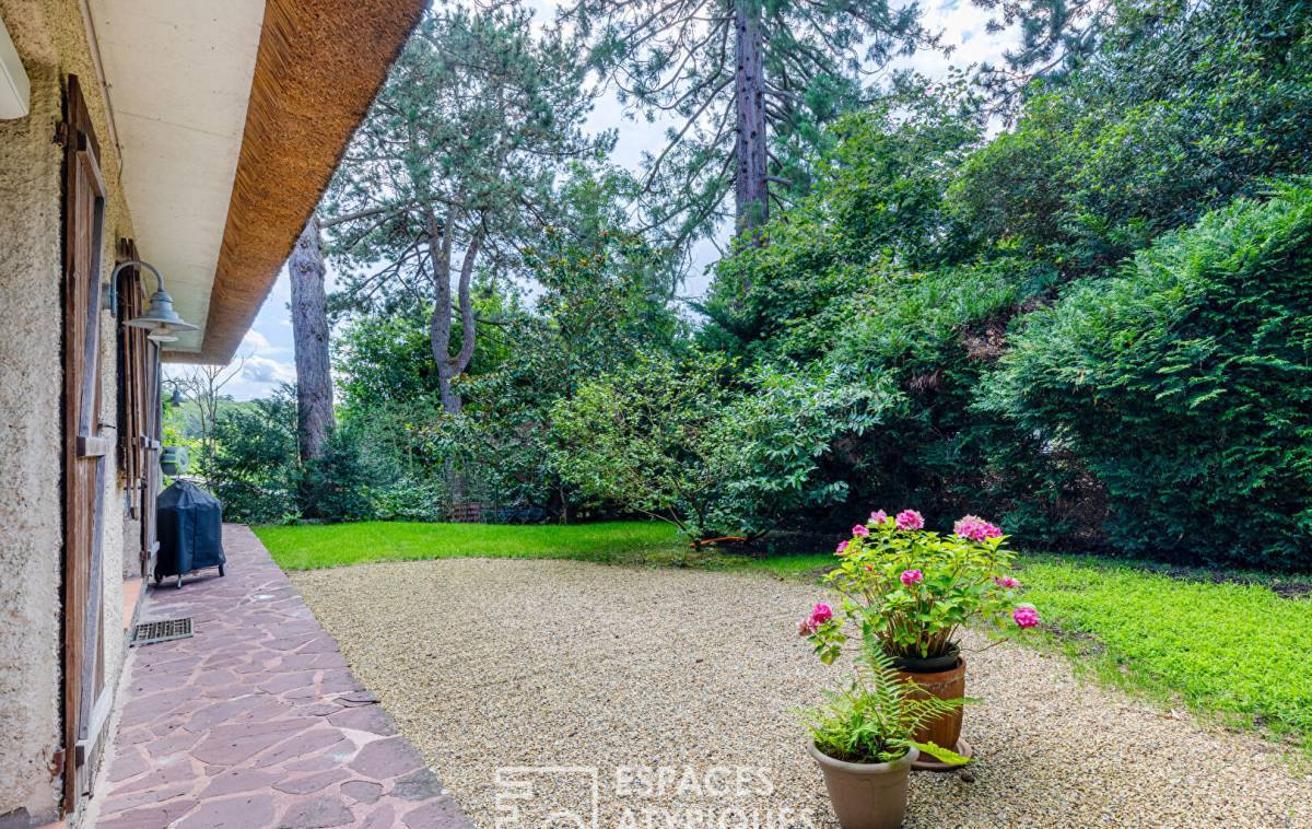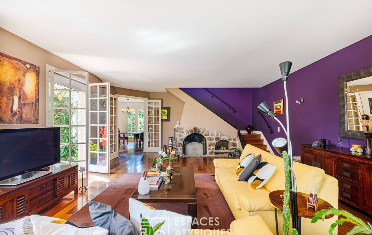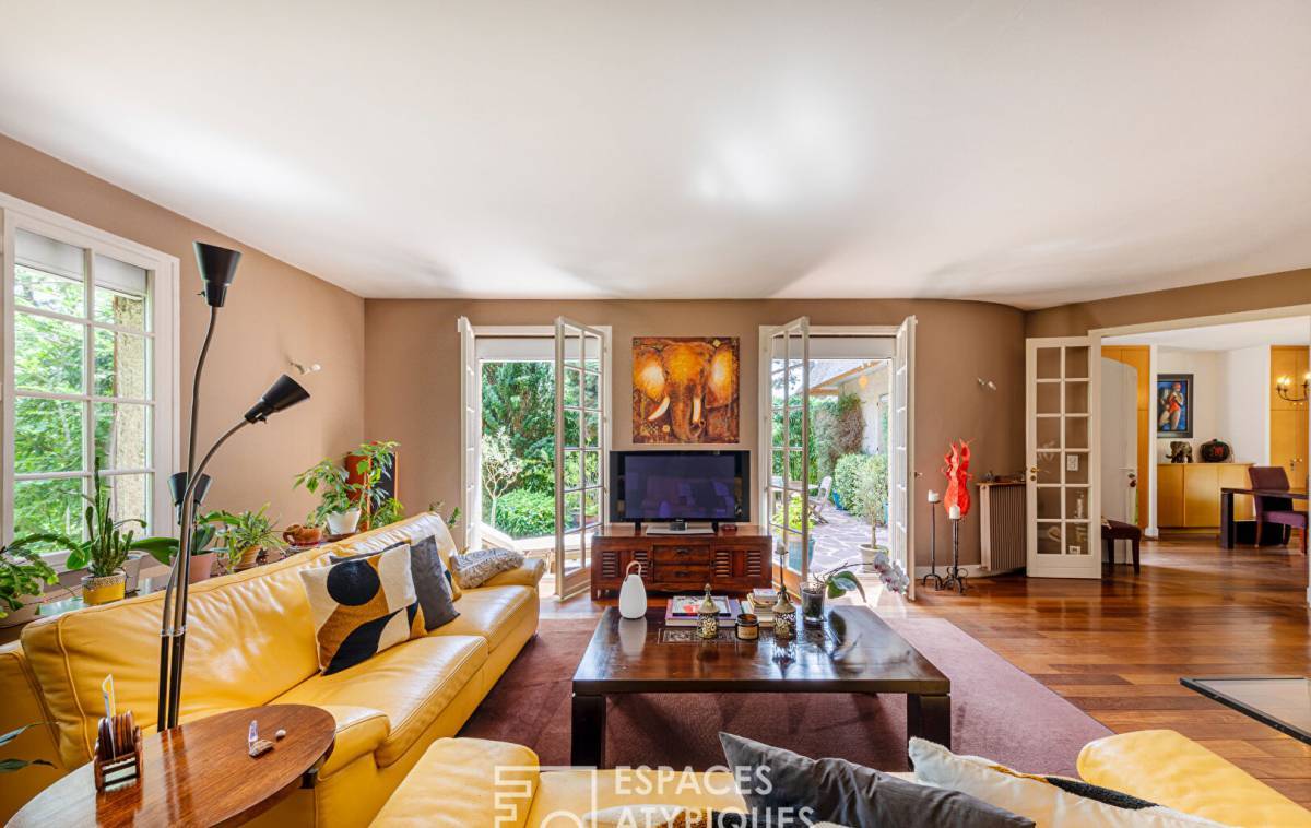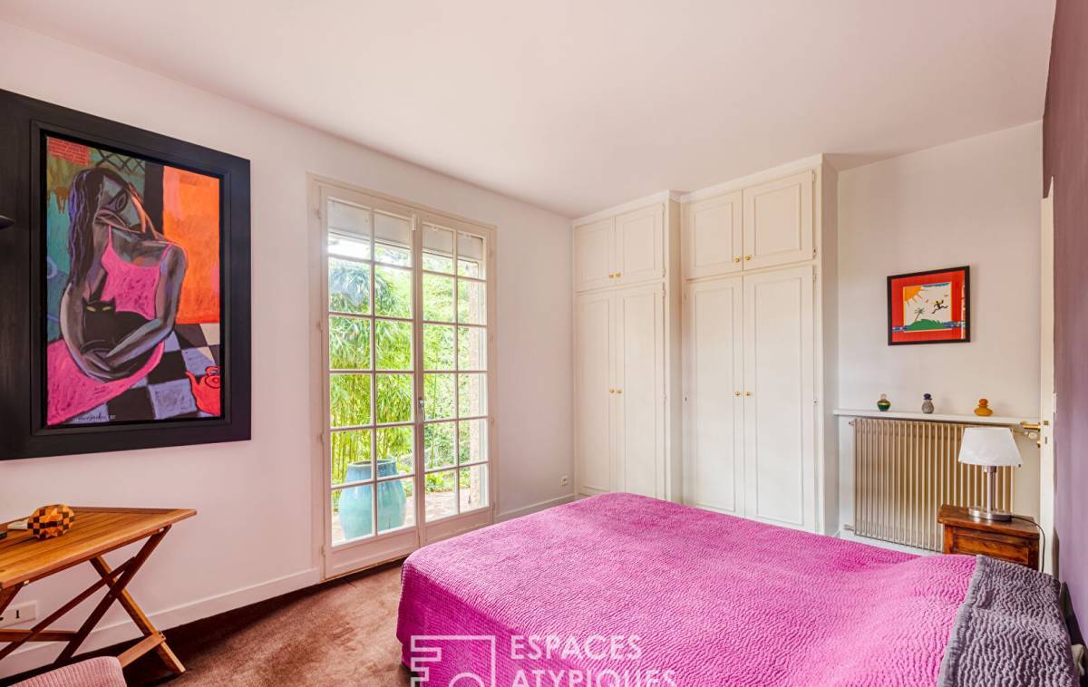 Located in the Gressets district, in a peaceful and green environment, this 182 sqm cottage (276.22 sqm on the ground) offers a serene and idyllic atmosphere, perfect for those looking to escape the hustle and bustle of the city. Only a 9-minute walk from Bougival train station, it is nestled in its superb landscaped, enclosed, not overlooked garden of 1,345 sqm. The entrance leads to the dining room and its large open and functional kitchen facing a west-facing terrace. The living room, which has a surface area of 41 sqm, benefits from a fireplace as well as the view of the terrace and its cleverly arranged garden. A pretty 15 sqm bedroom with its adjoining shower room benefits from the south/east-facing terrace. The upper floor consists of a landing which distributes two large bedrooms of 13 and 24 sqm and share a bathroom with shower. Then, the 25 sqm master suite offers a generous space with a double dressing room and a bathroom with private shower for optimal comfort. The full basement is organized into a 15 sqm laundry room, a 16 sqm storage room, a wine cellar and a tiled garage with two large parking spaces. This cottage is ideal for families, couples or people looking for a peaceful refuge in the countryside surrounded by birdsong. The property offers an exceptional natural setting, with opportunities for gardening and outdoor relaxation. A peaceful life while remaining connected to the city? Don't delay in visiting this rare gem! Swimming pool possible (PLU in UGd zone). Nursery and elementary schools 4 min walk, Collège Victor Hugo 12 min walk Bougival train station 9 min walk,