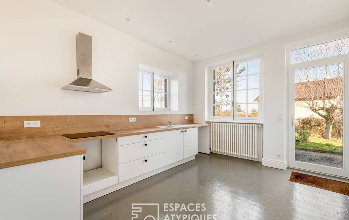 Located in the town of La Tour de Salvagny, near Dommartin, this renovated 205sqm old house sits on a 700sqm plot. Upon entering, the renovation blends old and modern materials. A vestibule offers plenty of storage space and leads to a large laundry room and a separate toilet. On the same level, a vast living room with moldings and a fireplace opens onto a beautiful stone terrace and the garden with unobstructed views. The separate kitchen has been fully fitted. A master suite with a shower room and outdoor access completes this level. A beautiful staircase with light wood screens leads to the first floor. Four large bedrooms are located there. The landing can be used as a games room or office space. A bathroom and a separate toilet complete this property. The spaciousness, renovation, and tranquility are the assets of this old house steeped in history. It will appeal to families looking for space and high-end amenities.