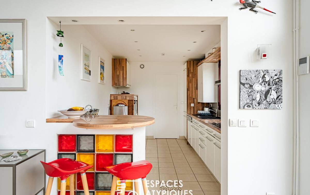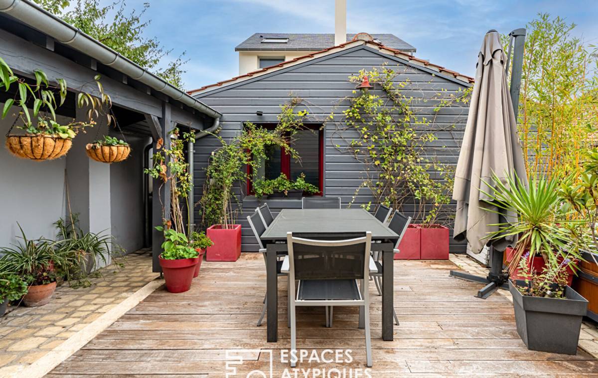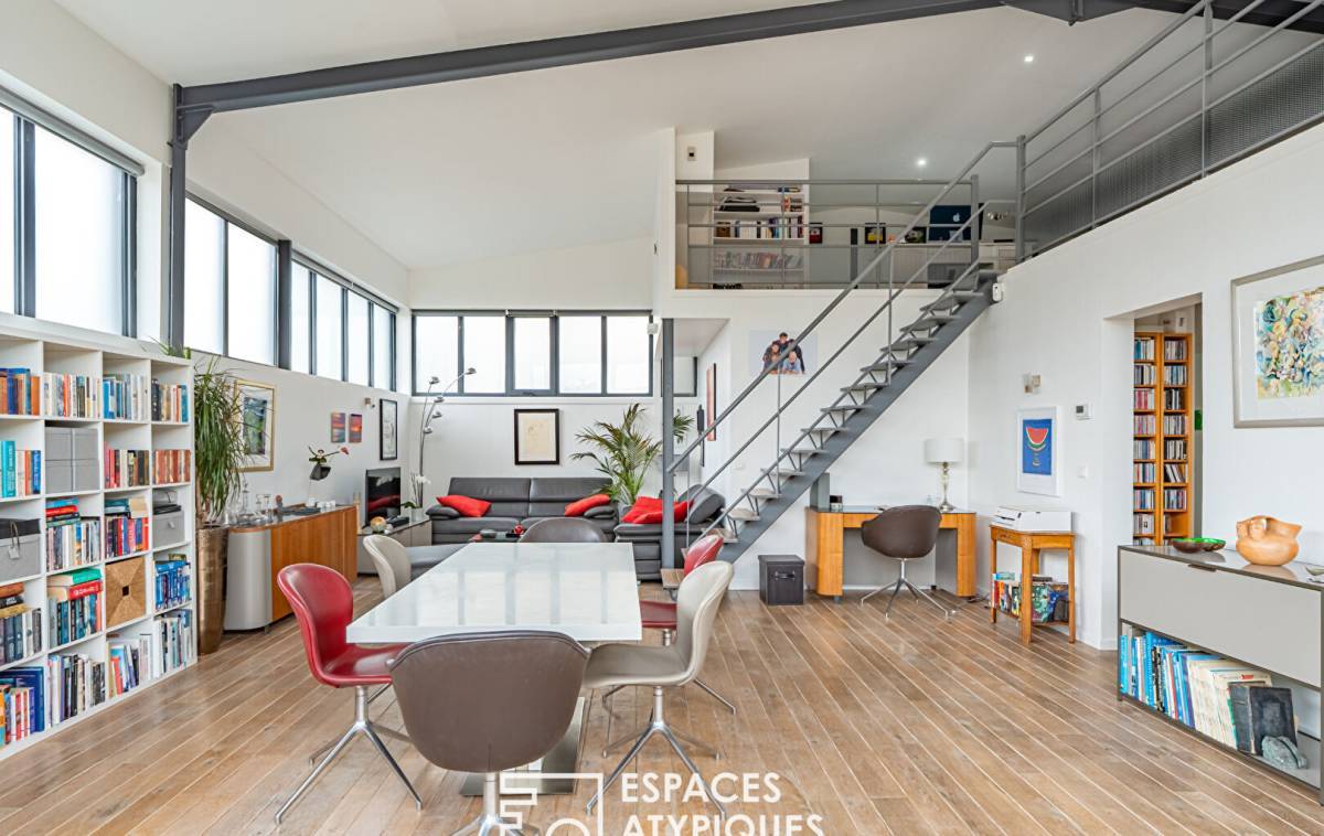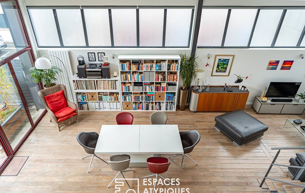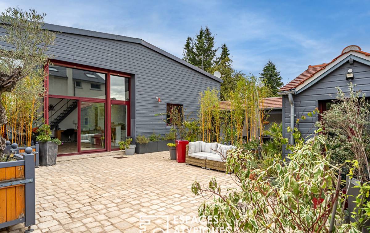 In Mesnil-le-Roi, this former workshop, built in 1920 and transformed into a loft by an architect in 2005, offers approximately 142 sqm of living space (215 sqm of floor space) on a 280 sqm plot. This rare property combines the original industrial character with a perfectly designed contemporary renovation, featuring solid oak parquet floors, exposed metal beams, and modern amenities. A unique opportunity to acquire a loft for sale in Yvelines, close to Maisons-Laffitte. The interior space is organized around a bright cathedral-style living room, opening onto a fitted kitchen. Two bedrooms (including a master suite), a bathroom, a shower room, a toilet, and a storage room complete the ground floor. A mezzanine, less than 1.80 m high, accommodates an additional bedroom and an office space. An independent 23 sqm studio with a shower room and WC is an additional asset, ideal for a teenager, a guest, or a professional activity. The property also includes a closed garage, an underground helical wine cellar, and several parking spaces. Outside, the landscaped paved courtyard provides an intimate and friendly atmosphere. The amenities enhance comfort: underfloor heating with a Viessmann boiler, a heat pump installed in 2022, home automation (roller shutters, automatic gate and garage door, alarm, videophone), fiber optics, and a Green'Up charging point for electric vehicles. The location is particularly attractive: a 2-minute walk from the bus stops leading to the RER A and the Maisons-Laffitte SNCF train station, the town center, its shops, schools, and services are easily accessible. A 2-minute walk from the bus stop to the Lycée International de St.Germain-en-Laye. Lycée International Ermitage is a 7-minute bus ride away. An atypical and modernized loft, designed to combine character, comfort and practicality in Mesnil-le-Roi. Available from 1/7/2026 DPE: Energy Class E / Climate Class E. Average energy prices indexed for the years 2021, 2022, 2023 (subscriptions included): between 2440 euros and 3360 euros.
