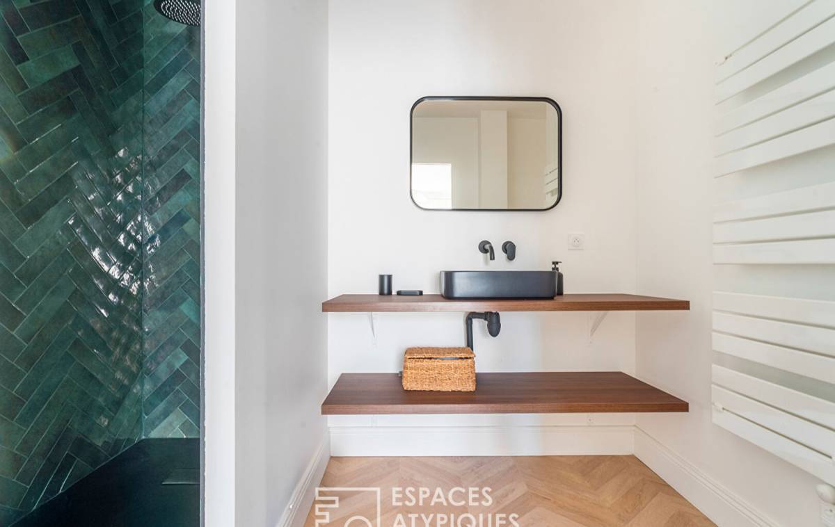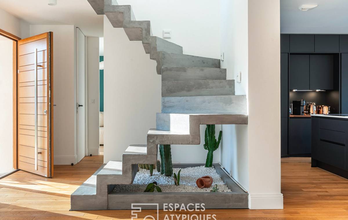 In this open space, each function blends brilliantly. Slightly set back, the kitchen has been designed with simplicity and refinement. Equipped with excellent amenities, it invariably benefits from this view of the outdoors. A laundry room is located on the second floor.