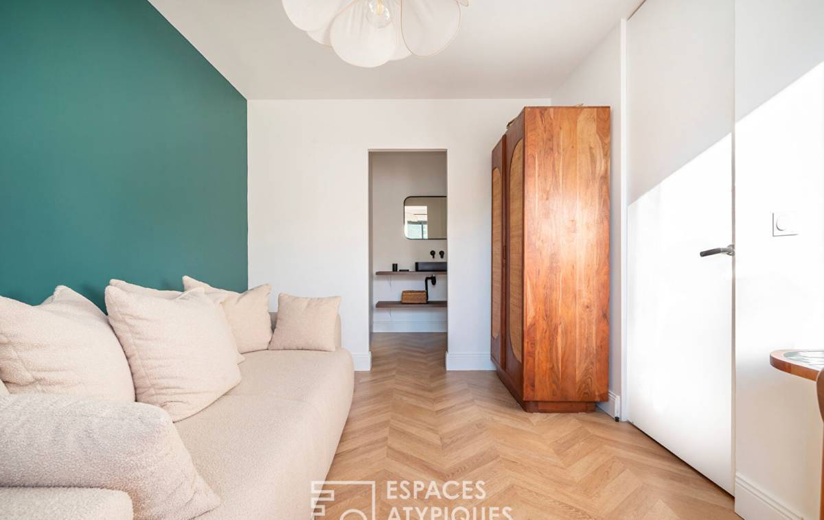 Upstairs, the 14m² landing features large bay windows offering a unique view of the pool and gardens.