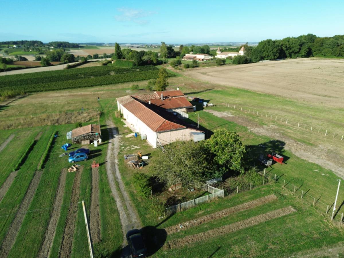Between JONZAC and CHEVANCEAUX (17) - Beautiful farmhouse at the end of a cul-de-sac in the countryside, consisting of a main house and two separate dwellings. The main house features a veranda entrance, a living room with a fitted kitchen and pantry.