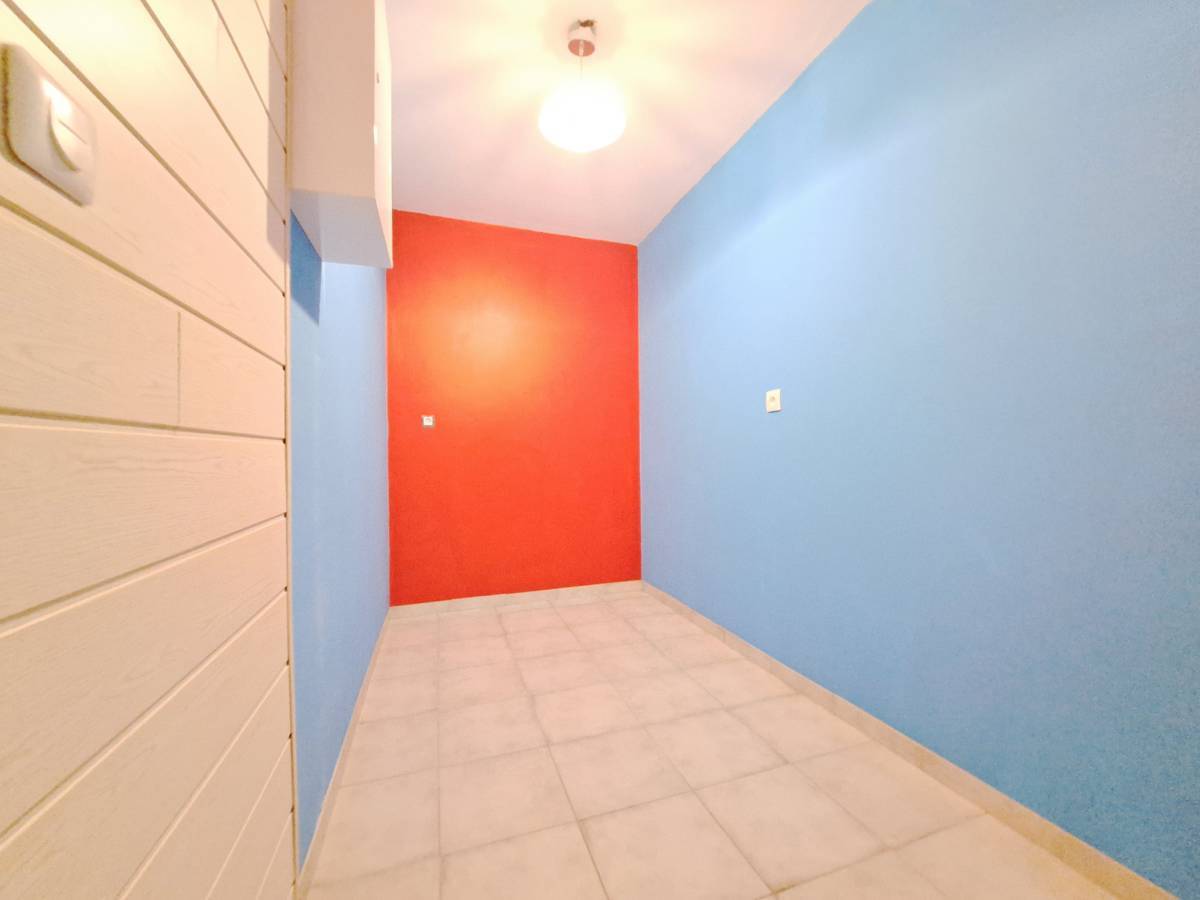 The gîte features an entrance hall, a living room with a kitchen, a bedroom, a bathroom, and a pantry all on one level.