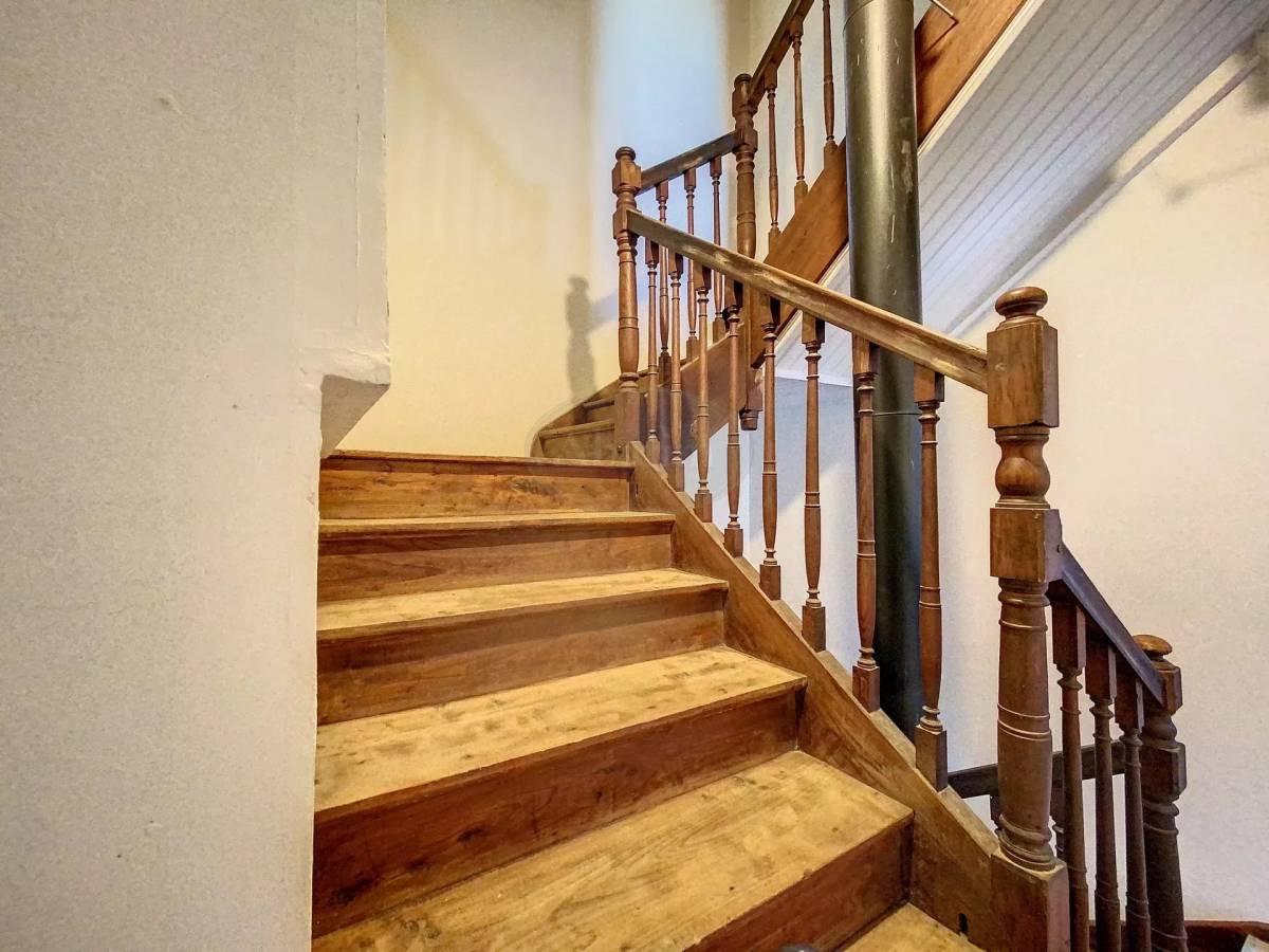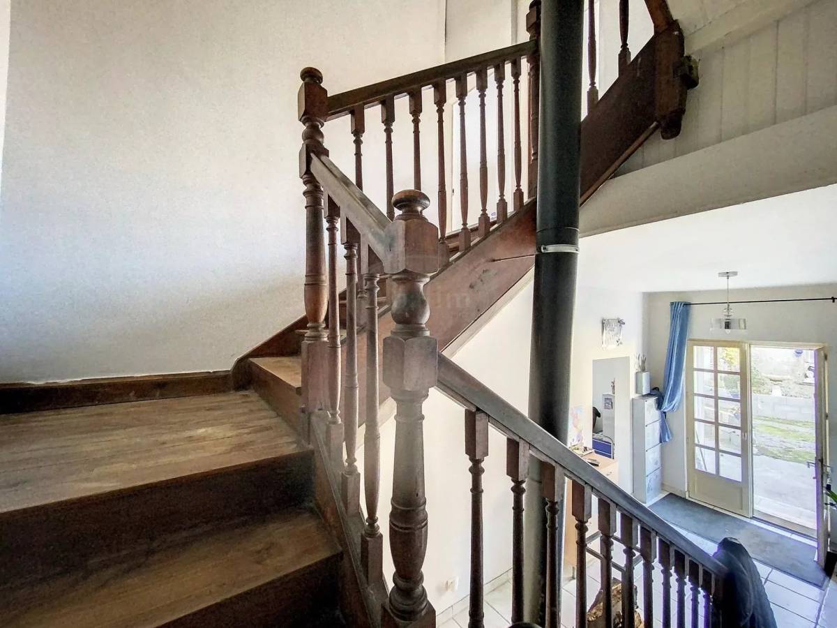 Outside, the gravel section in front of the house transforms to a leafy garden. There is a two-floor outbuilding with a 100m² footprint, partitioned and closed on the ground floor.